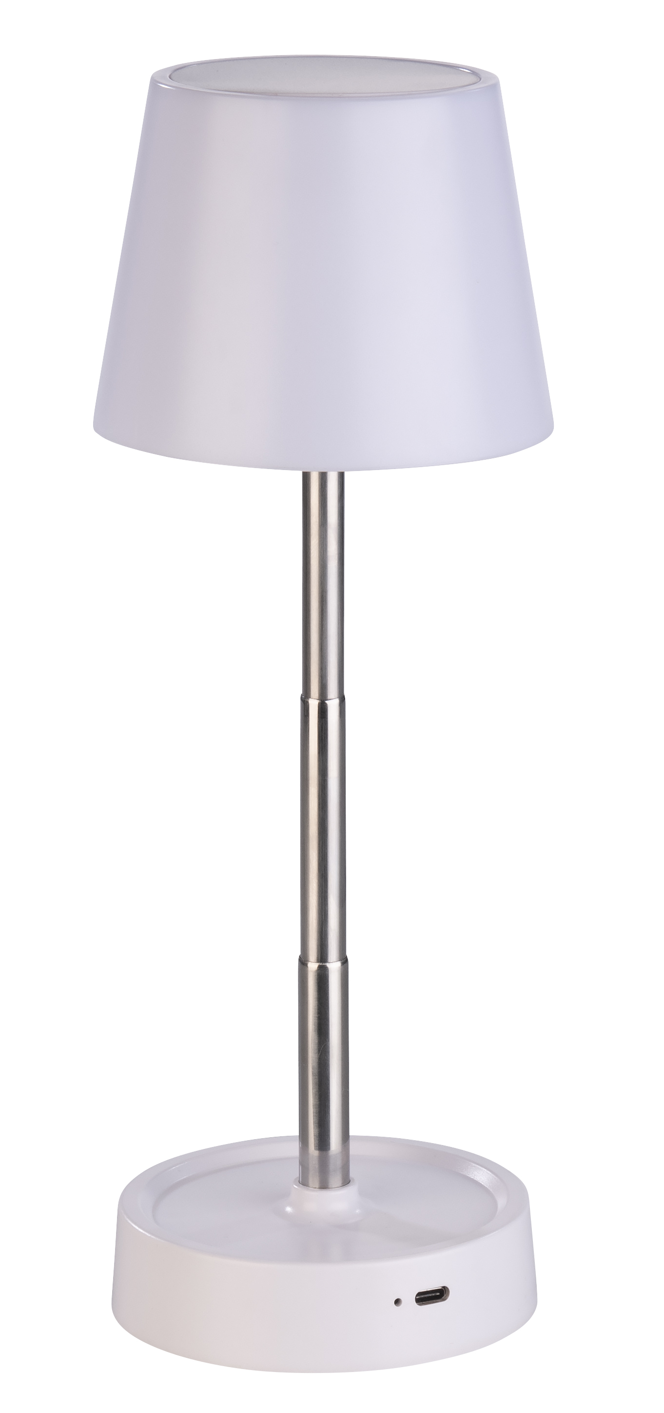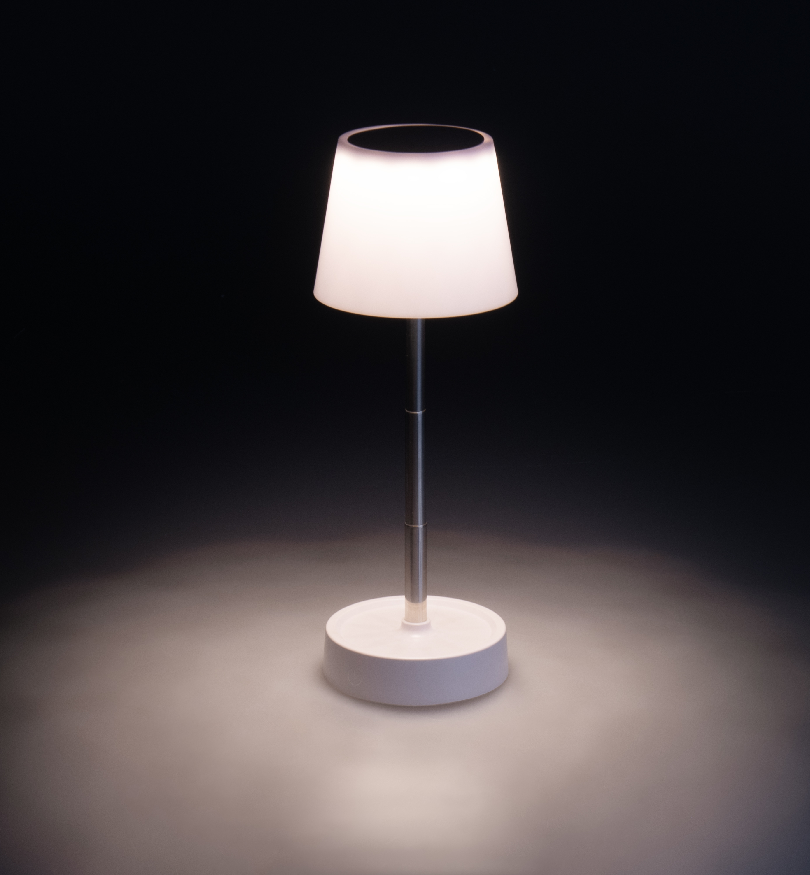 Dank Akkubetrieb spenden 12 SMD-LEDs unabhängig von einer Stromquelle bis zu 20 Stunden warmweißes Licht. Die Aufladung erfolgt über einen USB-Anschluss, der mit handelsüblichen Ladegeräten für Smartphones oder Tablets kompatibel ist..
