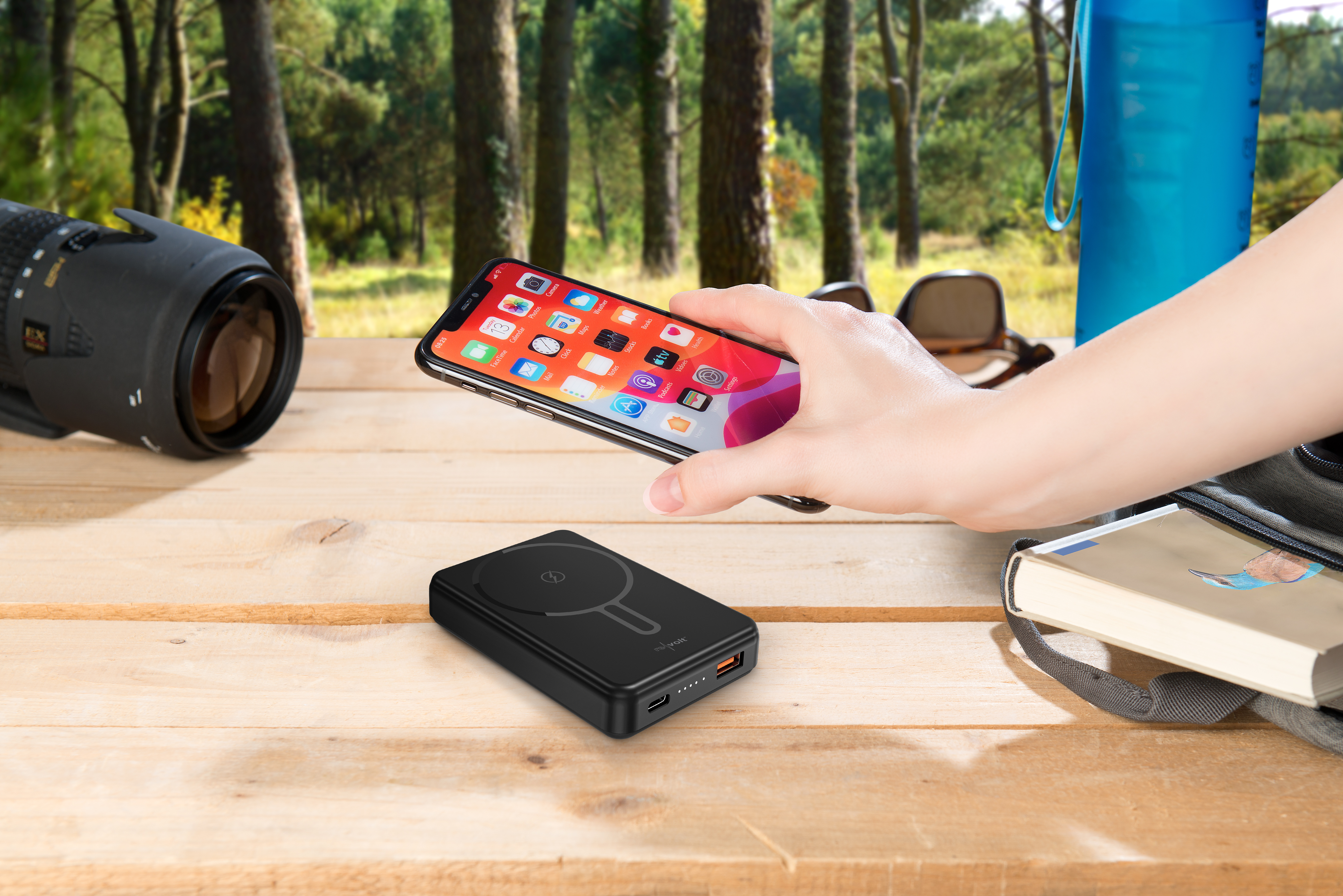 (lifepr) (Buggingen, 21.03.2025) Die Wireless-Powerbank von revolt mit einer Kapazität von 10.000 mAh ermöglicht schnelles und kabelloses Aufladen unterwegs. Mit einer Ladeleistung von bis zu 22,5 Watt und einem USB-C-Anschluss mit Power Delivery werden Geräte schnell aufgeladen. Die MagSafe-Kompatibilität ermöglicht komfortables kabelloses Laden. Eine LED-Anzeige informiert über den Ladezustand.