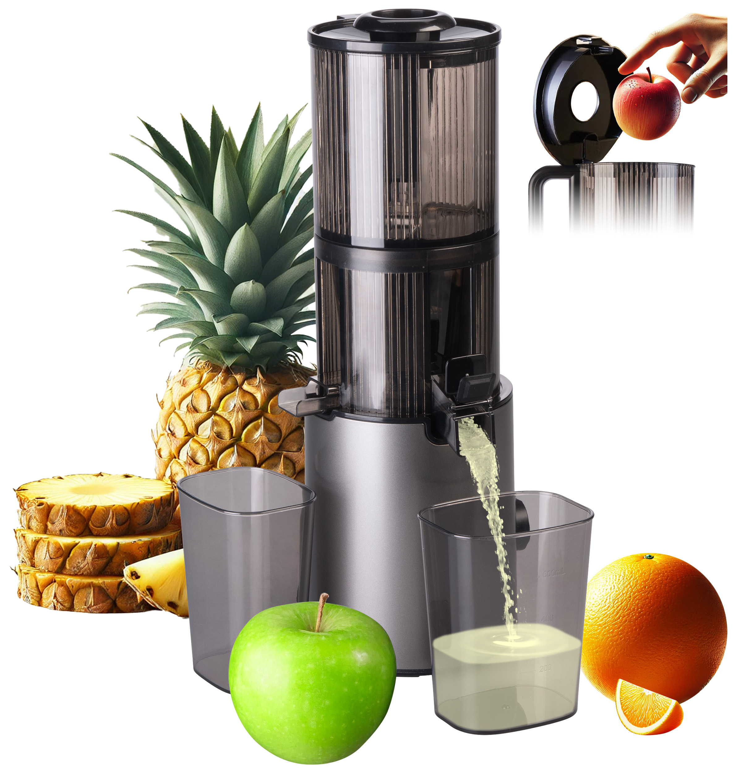Auch für ganze Früchte: Äpfel oder Birnen können ohne vorheriges Schneiden oder Entkernen als Ganzes in den Entsafter gegeben werden, was das Entsaften deutlich schneller und bequemer macht.