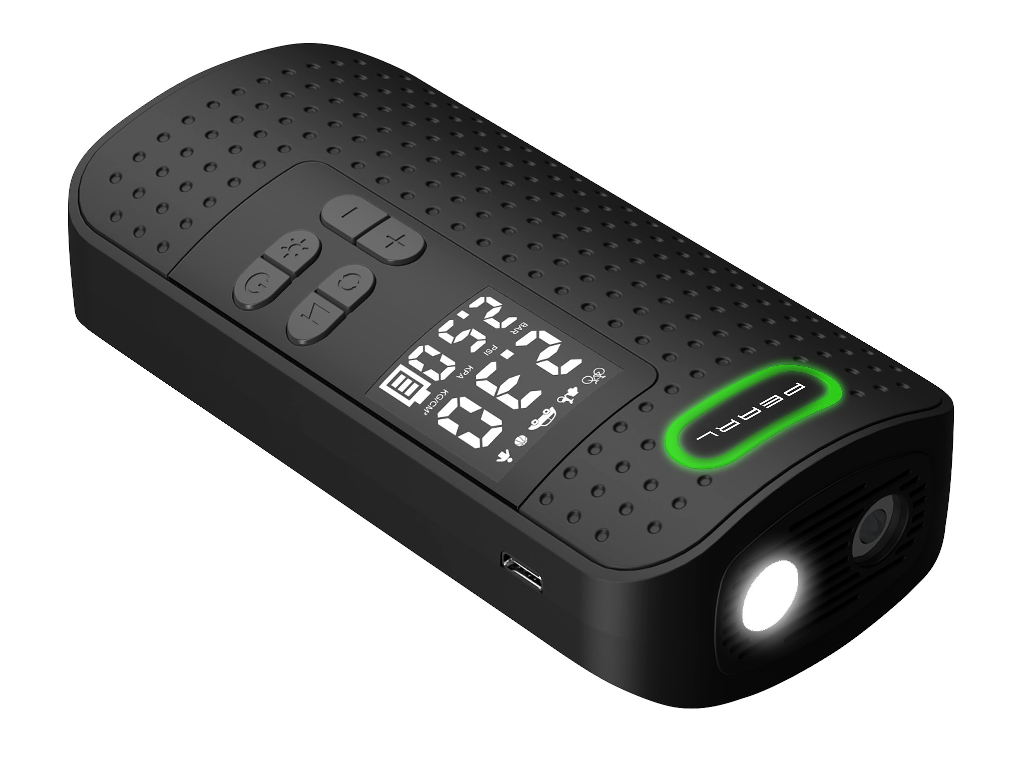 Für den Einsatz bei schlechten Lichtverhältnissen ist die Luftpumpe mit einer integrierten LED-Leuchte ausgestattet. So bleibt die Handhabung auch bei Dämmerung oder Dunkelheit sicher und effizient.