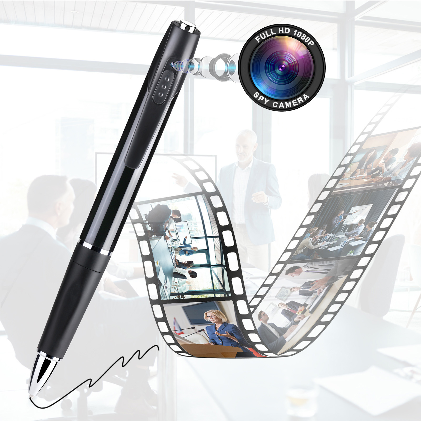 Ein neuartiger Kugelschreiber mit integrierter Full-HD-Videokamera von OctaCam ermöglicht die Aufzeichnung von Meetings, Vorträgen oder persönlichen Notizen in Bild und Ton. Die Kameraeinheit ist vollständig im Gehäuse verborgen und wird per Knopfdruck aktiviert. Ein eingebautes Mikrofon sorgt für die synchrone Tonaufnahme.