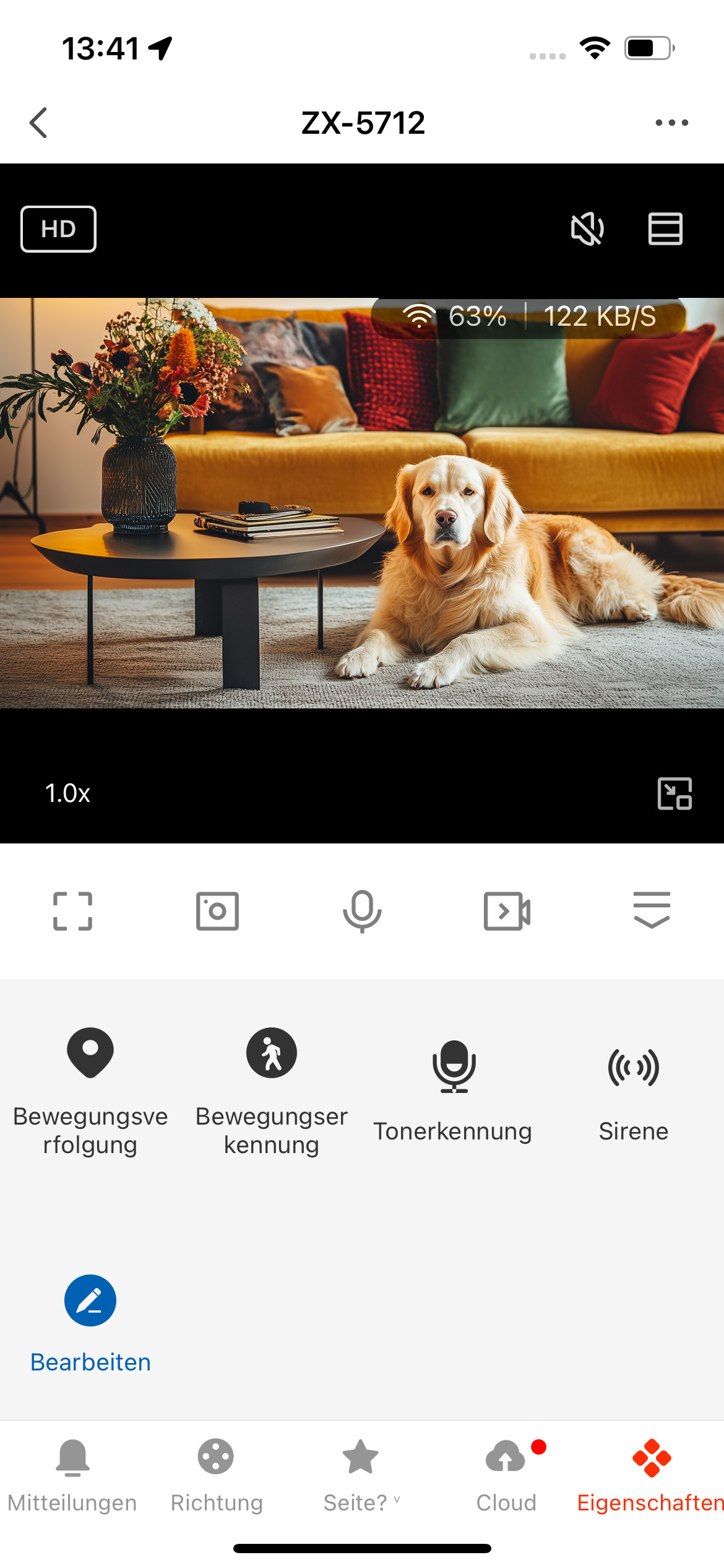 Eine integrierte Sirene mit einer Lautstärke von bis zu 85 Dezibel dient der akustischen Abschreckung. Die Auslösung kann manuell über die App, automatisch bei Bewegungserkennung oder über externe Sensoren erfolgen.