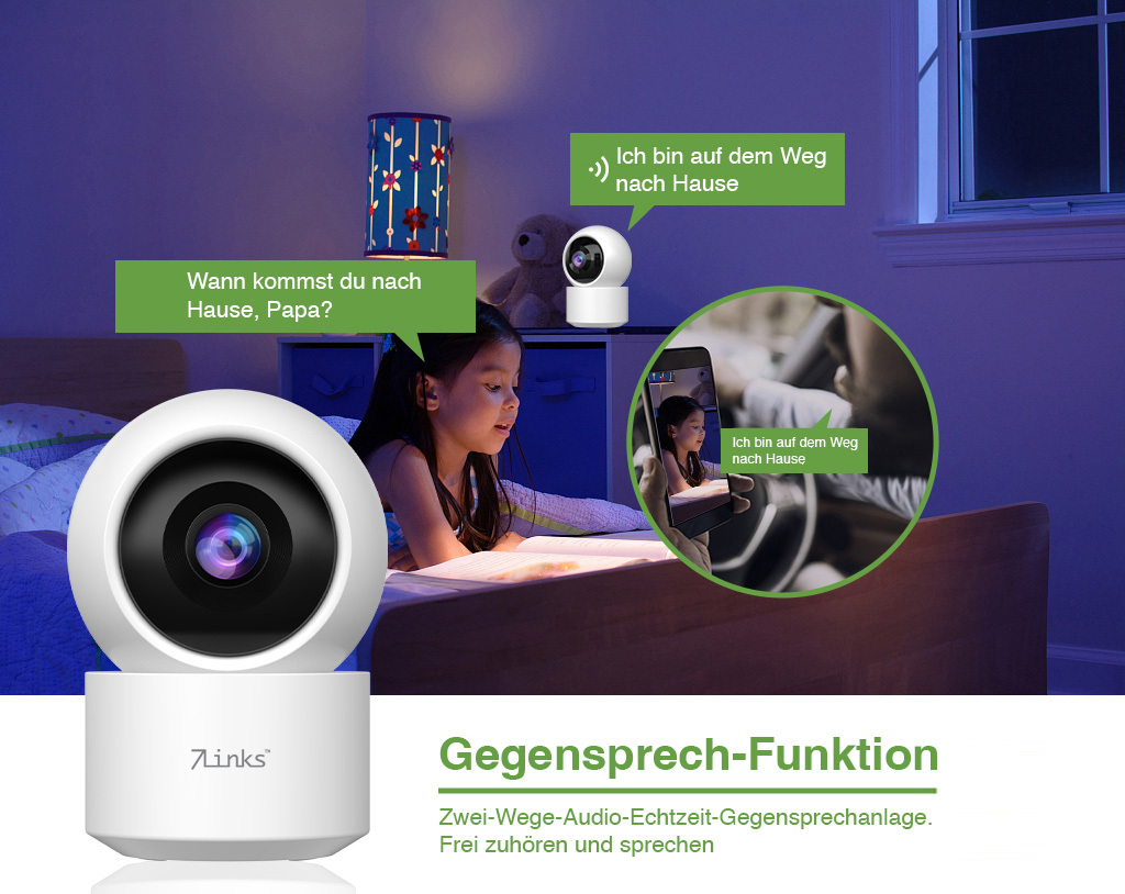 Die WLAN-Pan-Tilt-Überwachungskamera von 7links sorgt für mehr Sicherheit in privaten und gewerblichen Innenräumen. Ausgestattet mit einer hochauflösenden 2K-Kamera, Infrarot-Nachtsicht sowie einer global steuerbaren App-Anbindung ermöglicht das Gerät eine Echtzeitüberwachung aus der Ferne.
