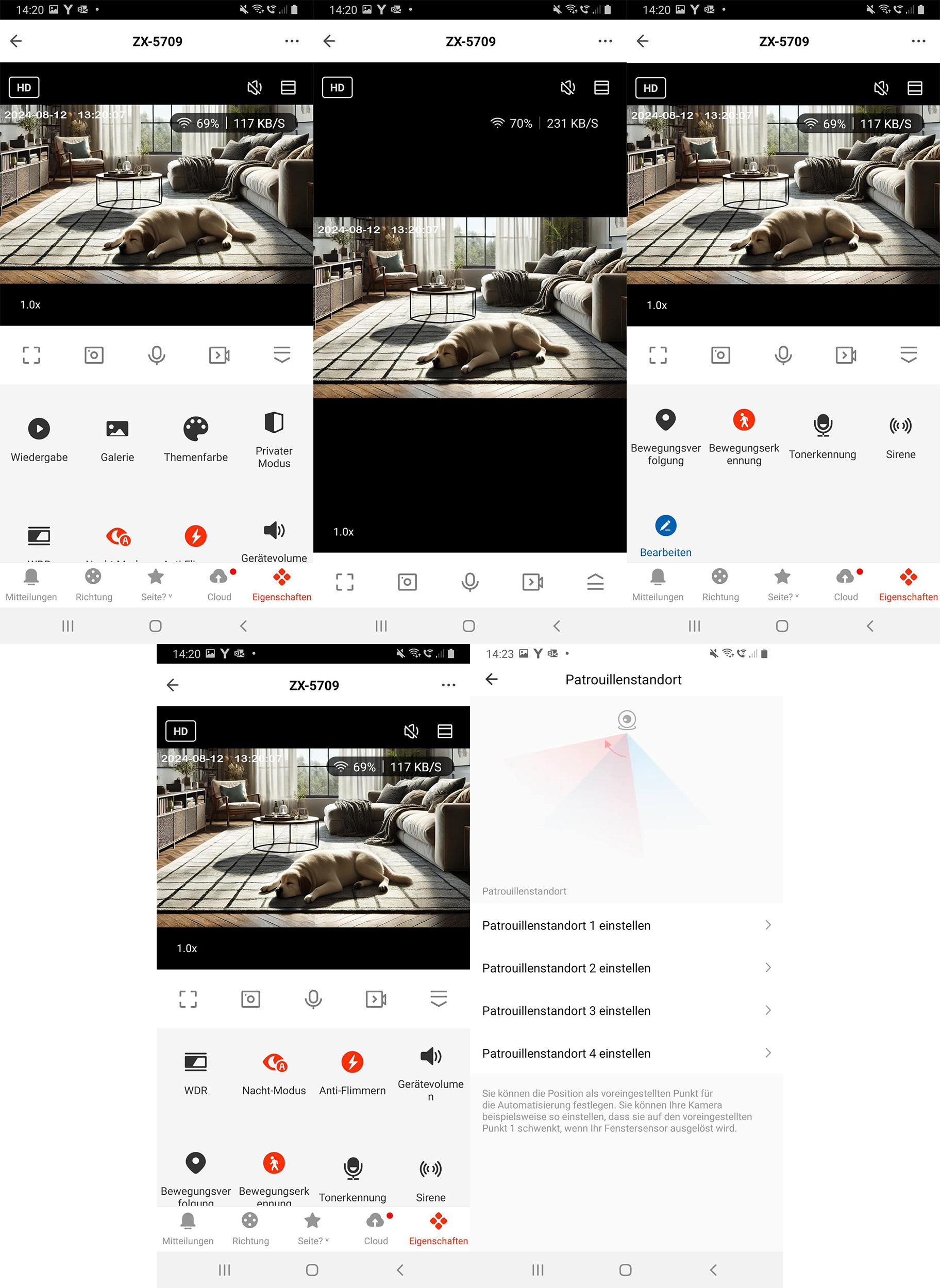 Die integrierte Patrouillenfunktion ermöglicht das automatische Anfahren von bis zu vier frei wählbaren Überwachungspositionen. Die Steuerung kann zeitgesteuert oder über die App durch sogenannte intelligente Szenen erfolgen. So wird beispielsweise bei Auslösung eines Fensteralarms ein definierter Kamerawinkel angesteuert.