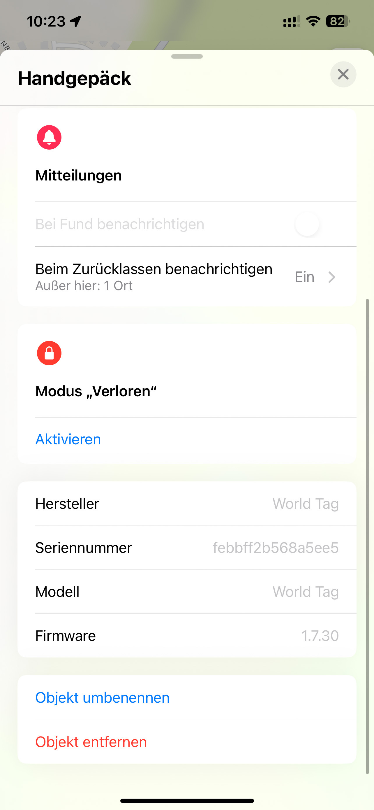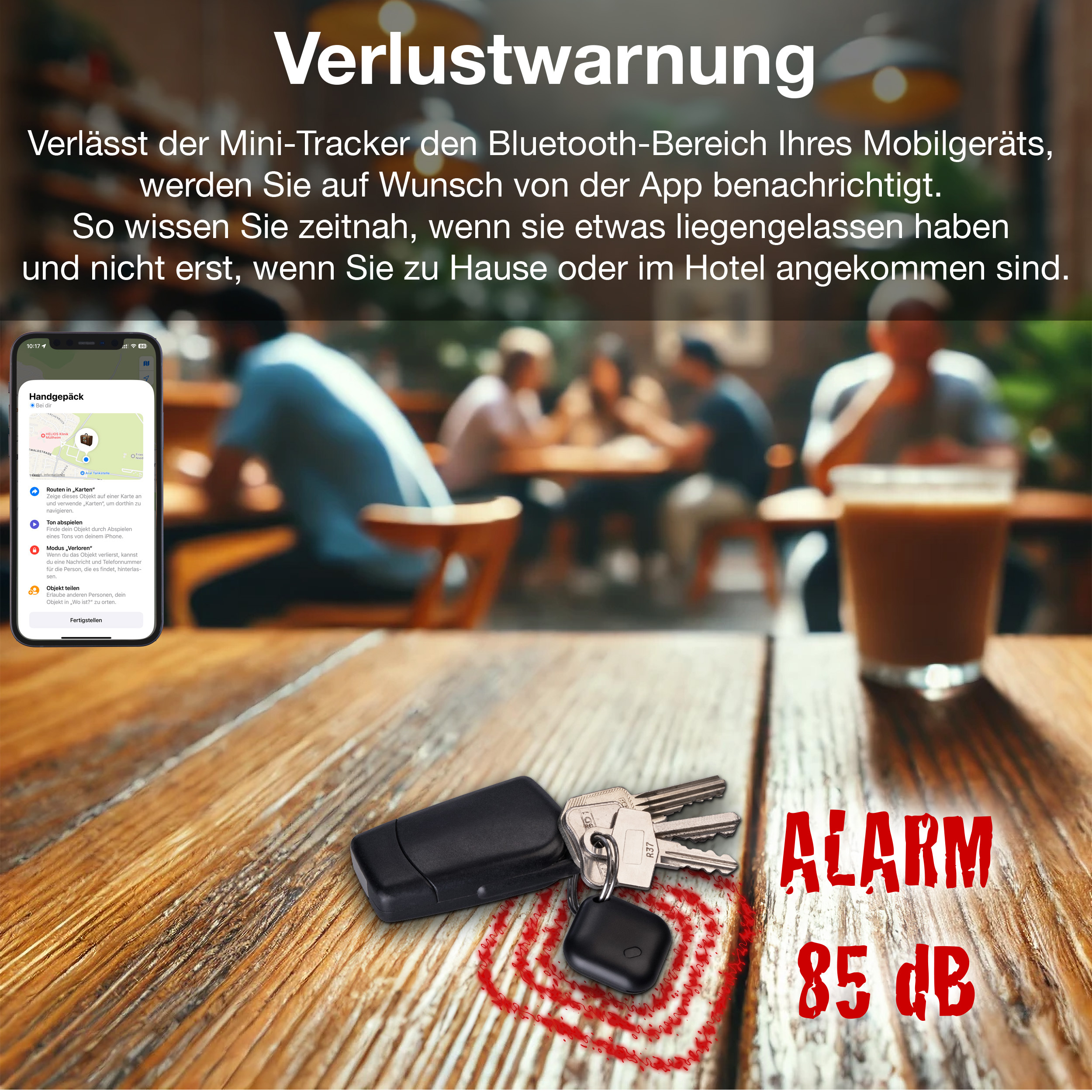 Eine integrierte Verlustwarnung informiert auf Wunsch, sobald der Tracker die Bluetooth-Reichweite des Mobilgeräts verlässt. So kann frühzeitig reagiert werden, bevor der Verlust endgültig festgestellt wird.