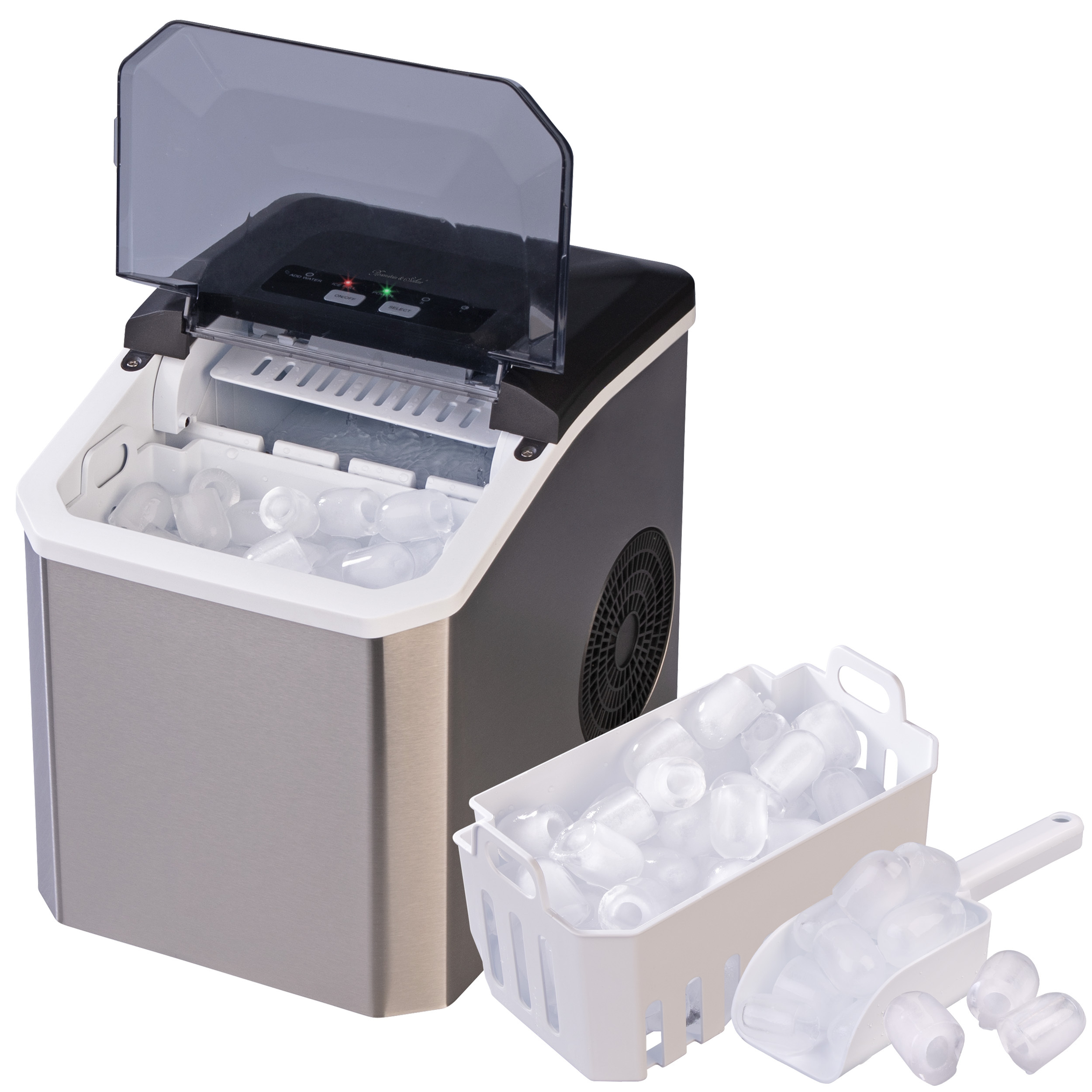 Großer Wassertank und praktischer Eisbehälter: Der 1,3 Liter Wassertank sorgt für lange Laufzeiten ohne Nachfüllen. Der abnehmbare Eiskorb erleichtert das Servieren und Lagern der Eiswürfel.