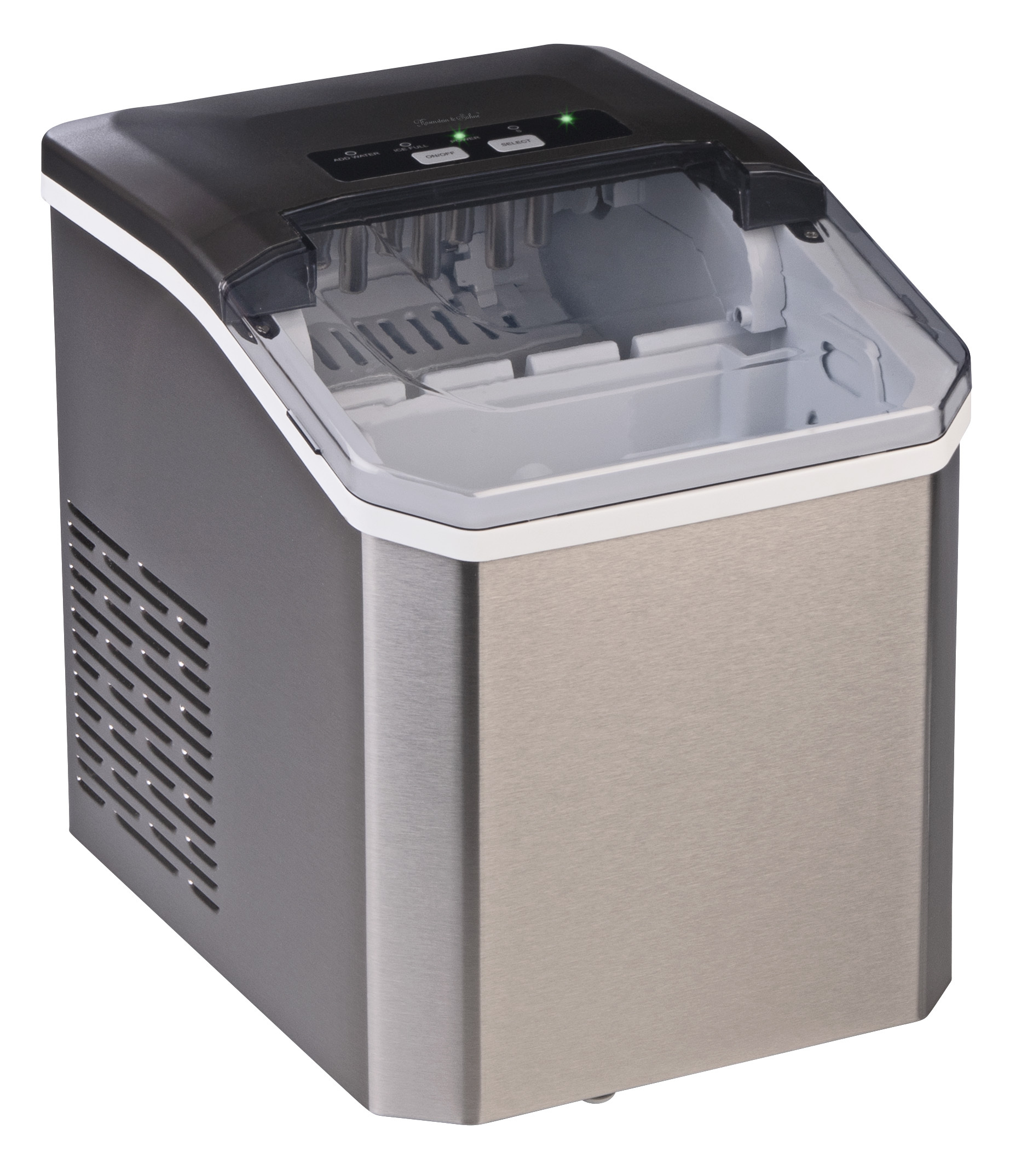 Die Rosenstein & Söhne Eiswürfelmaschine EWM-100 aus Edelstahl mit Selbstreinigung ist ab sofort bei pearl.de und bei emall.com verfügbar und unter der Bestellnummer