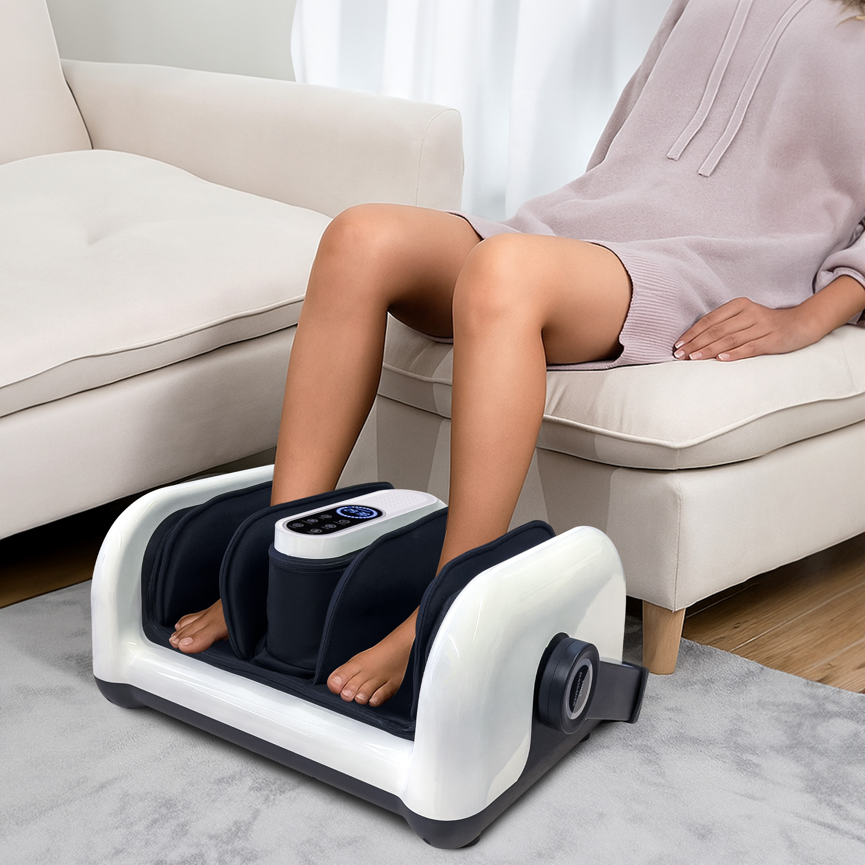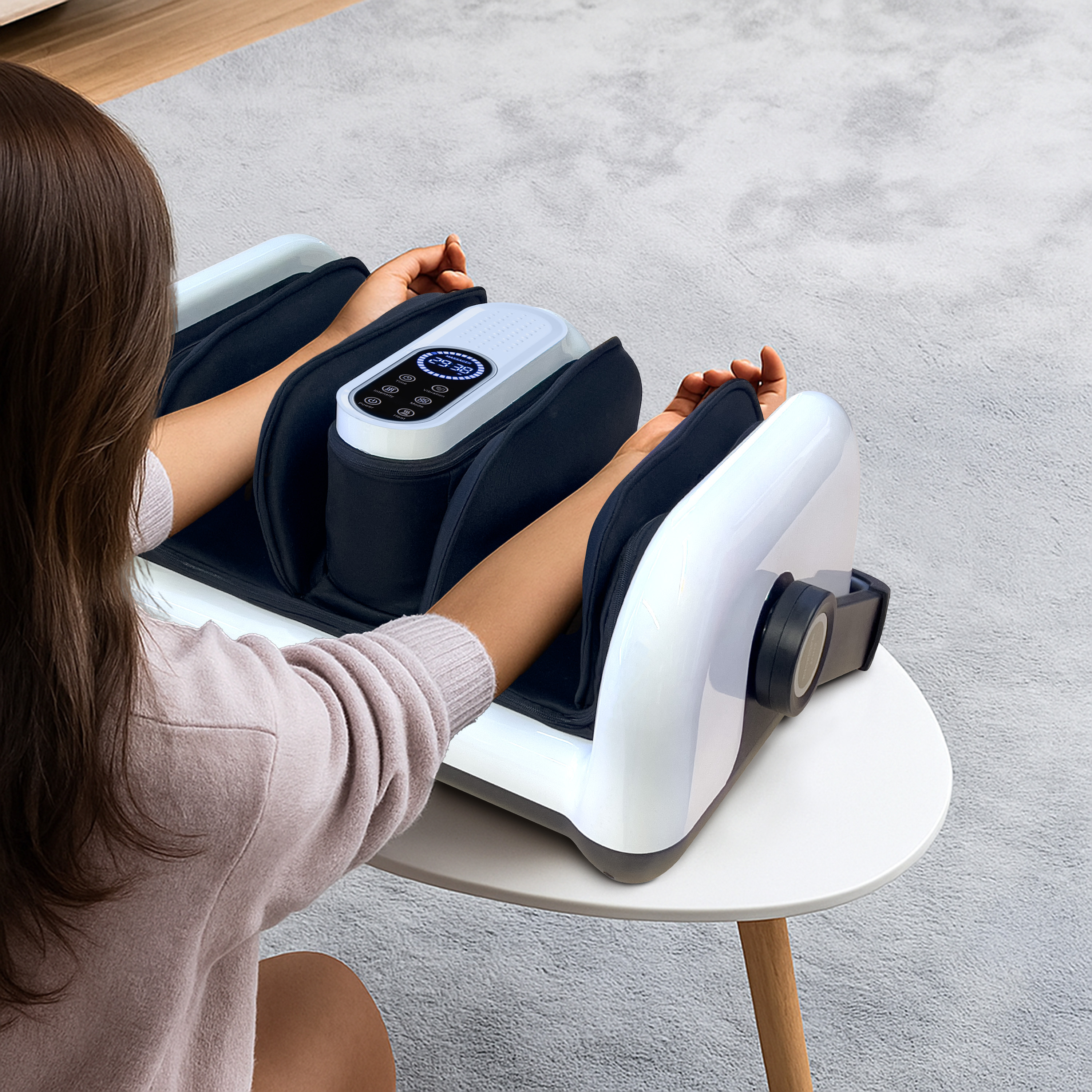 5 Massage-Modi mit 9 Intensitäts- und 3 Wärmestufen sorgen für die passende Massage an Füßen, Waden und Unterarmen. Dabei sorgen die Luftkissen und die doppelseitig drehenden Rollen für ein besonders angenehmes Gefühl.