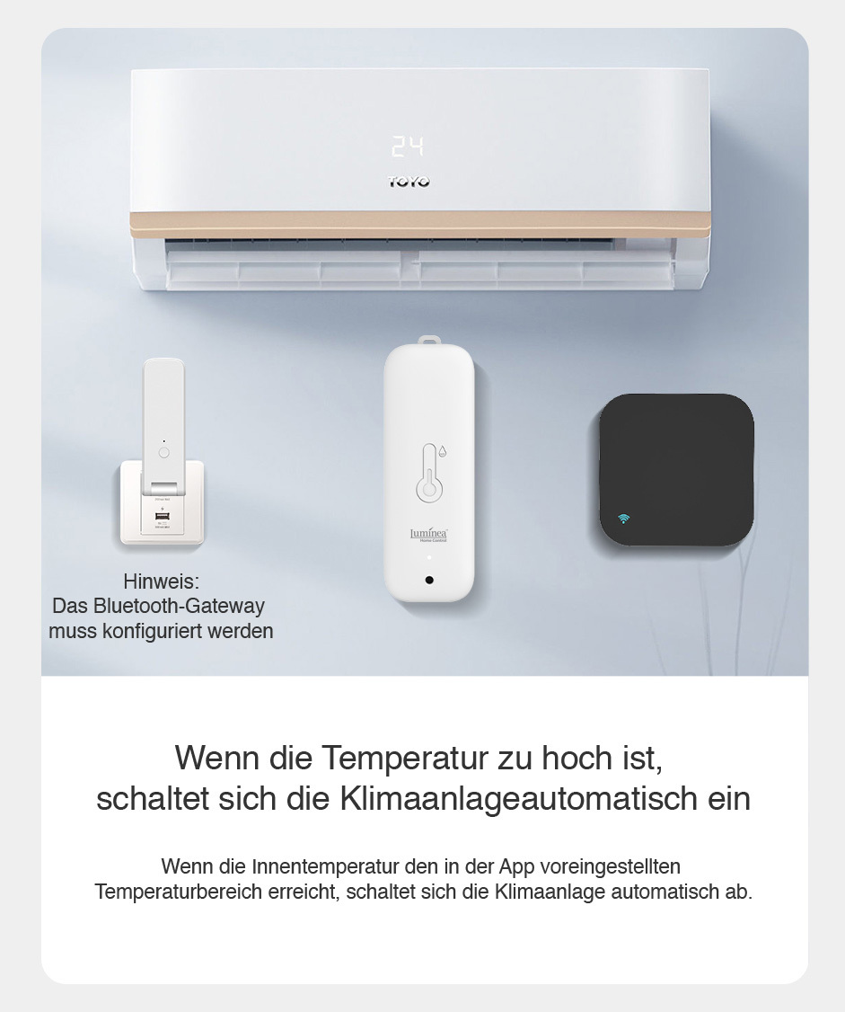 (lifepr) (Buggingen, 25.06.2025) Das smarte Luminea Home Control Thermometer & Hygrometer mit Bluetooth überwacht Temperatur und Luftfeuchtigkeit in Echtzeit per Bluetooth-5-Verbindung und kostenloser ELESION-App. Das IP65-Gehäuse ermöglicht zuverlässigen Einsatz im Außenbereich und in Feuchträumen. Der integrierte Datenlogger speichert 12 Wochen Messdaten, die per App ausgewertet werden können - mit einer Alarmfunktion bei Grenzwertüberschreitung. Die Kompatibilität mit Smart-Life, Tuya, Alexa, Google Assistant und Siri erlaubt die Integration in bestehende Smart-Home-Systeme, z. B. auch zur automatisierten Klimageräte-Steuerung. Eine Kalibrieroption, Grenzwertbenachrichtigungen und Sprachsteuerung bieten zusätzlichen Komfort.