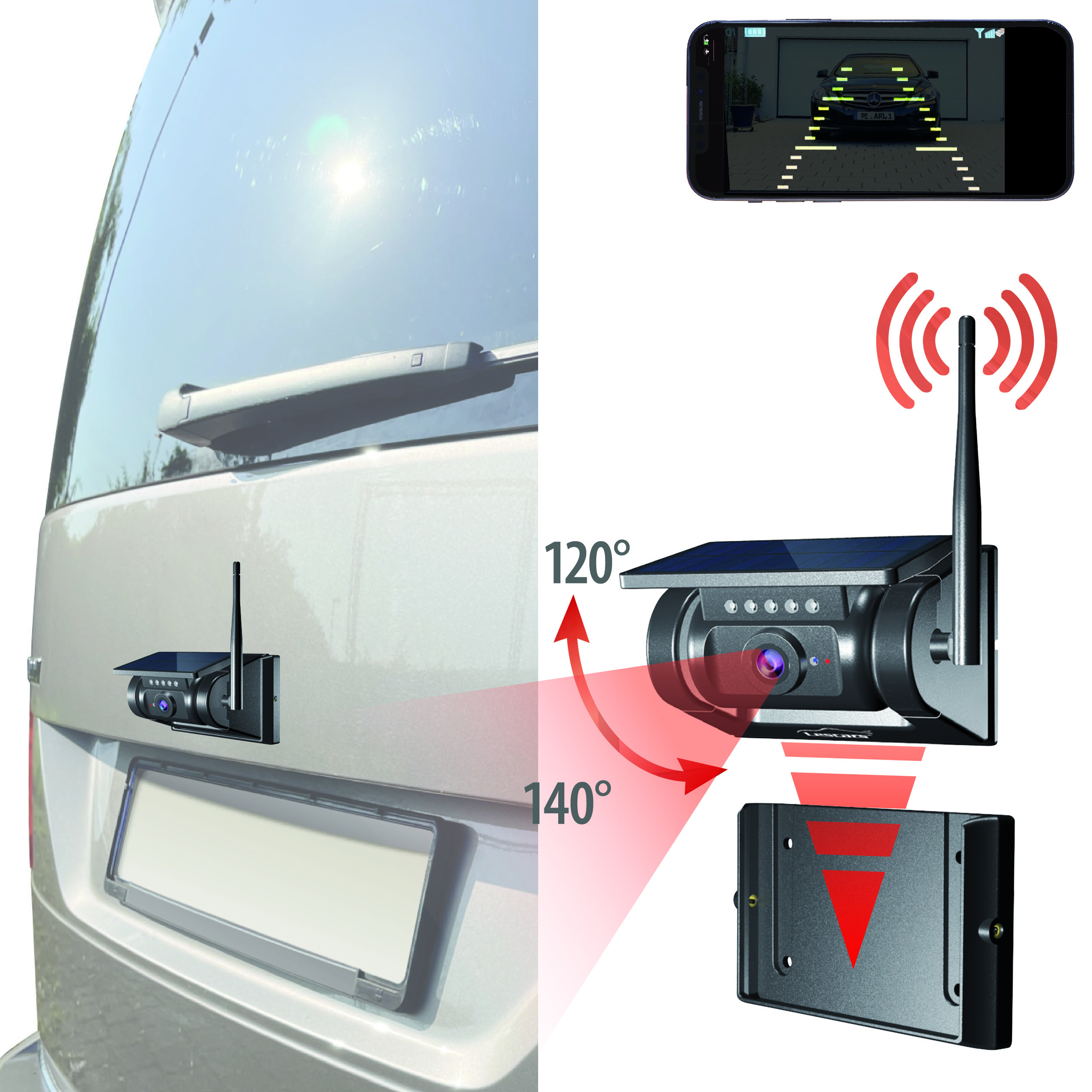 Smartphone-Integration ohne zusätzlichen Monitor: Die WLAN-Solar-Rückfahrkamera von Lescars überträgt das Livebild per selbst erzeugtem WLAN per App direkt auf das Display des Smartphones. Eine spezielle App ermöglicht die Überwachung des Bereichs hinter dem Fahrzeug ohne zusätzlichen Monitor im Innenraum. Infrarot-Nachtsicht gewährleistet klare Sicht auch bei Dunkelheit.