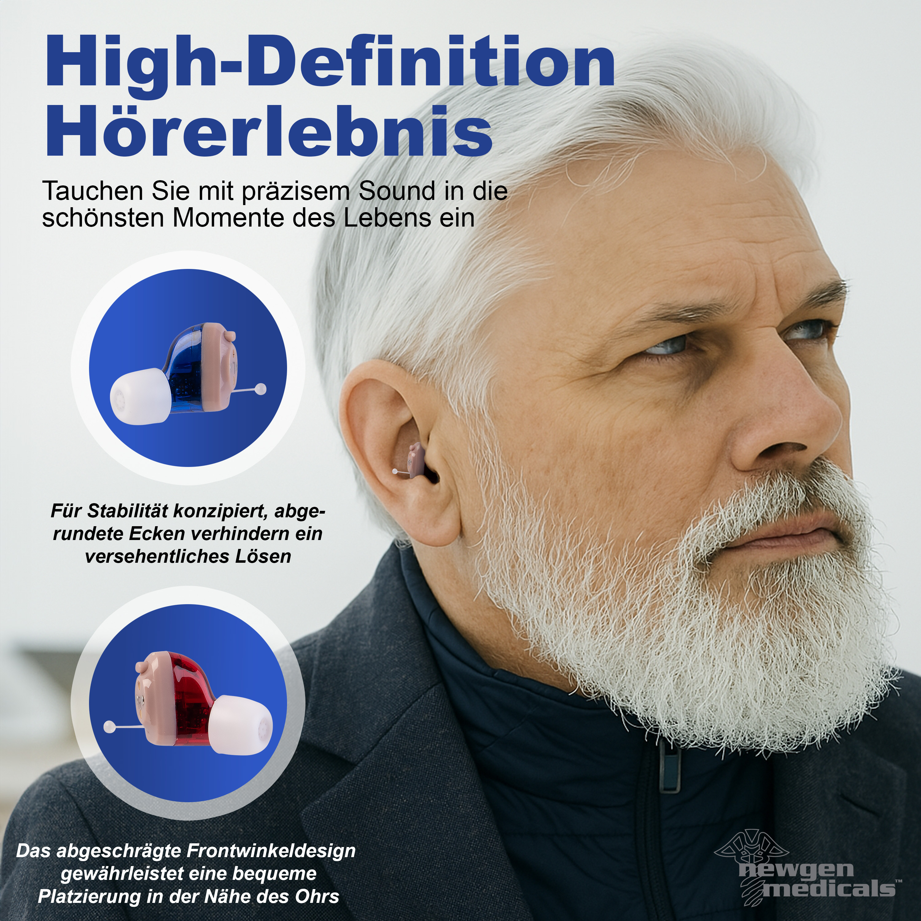 Kaum sichtbar und maximaler Tragekomfort: Die kompakte Bauform des medizinischen digitalen HdO-Hörgeräts von newgen medicals ermöglicht ein komfortables und nahezu unsichtbares Tragen hinter dem Ohr. Perfekt für den diskreten Einsatz im Alltag - ohne störendes Druckgefühl.
