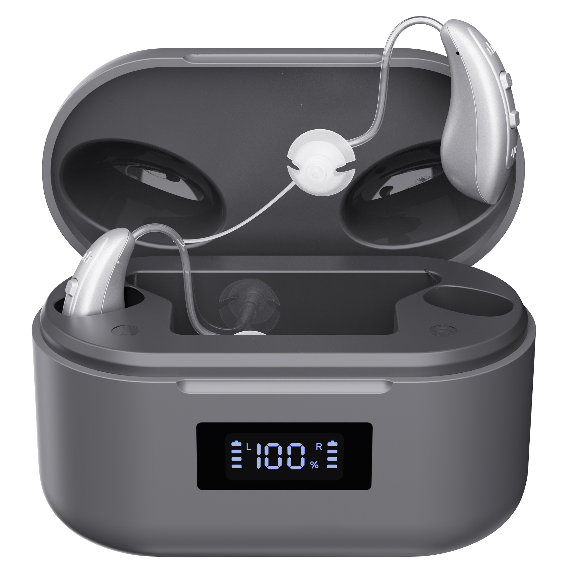 Langanhaltende Leistung mit praktischer Ladestation: Die Akku-Ladecase lädt die Hörgeräte bequem zweimal auf, sodass man sich den ganzen Tag auf bestes Hören verlassen kann. Und das Ladecase selbst lädt man einfach per USB, z.B. mit dem Netzteil vom Mobilgerät.