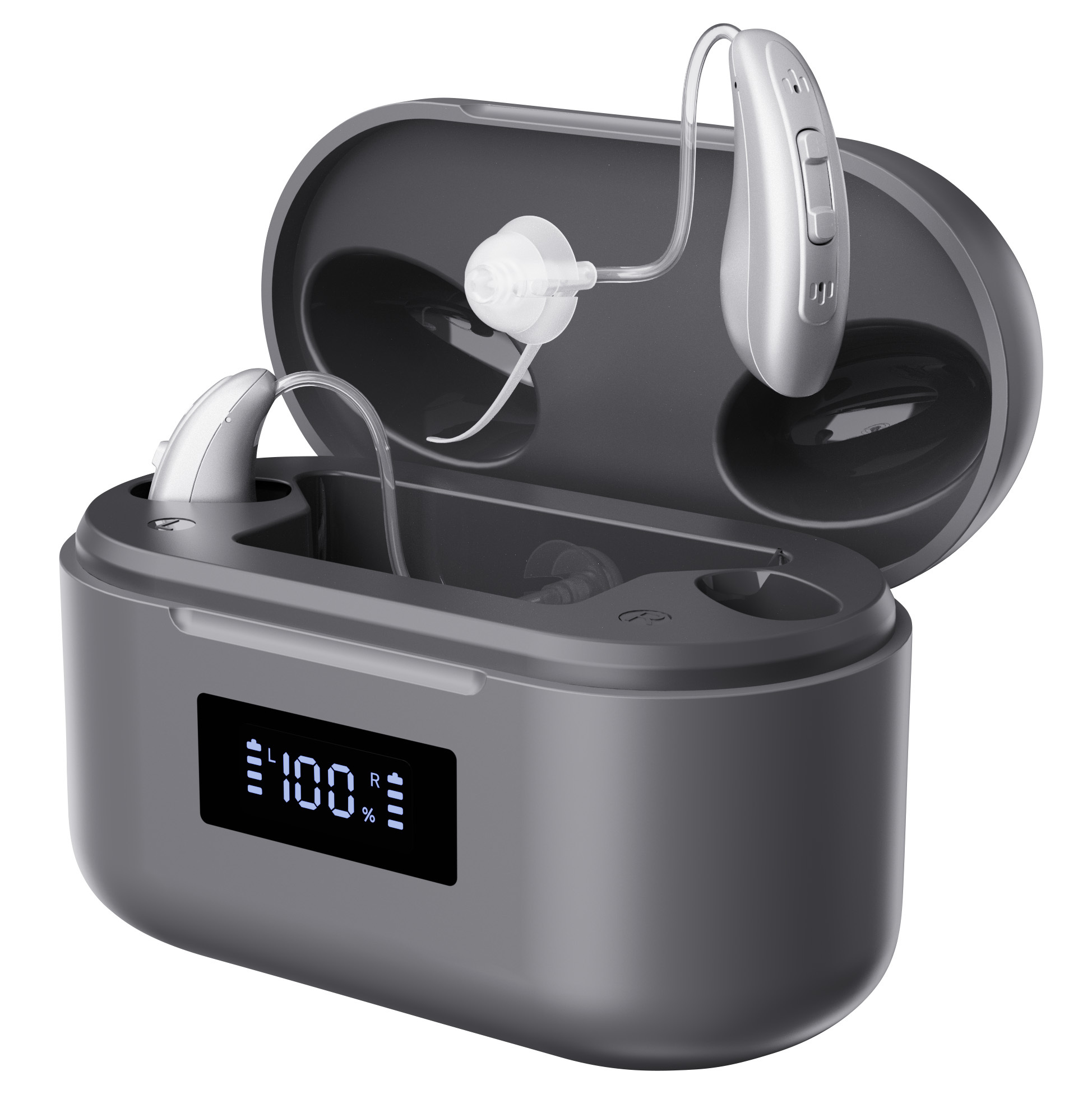 Langanhaltende Leistung mit praktischer Ladestation: Das Akku-Ladecase lädt die Hörgeräte bequem auf, sodass man sich den ganzen Tag auf bestes Hören verlassen kann. Und das Ladecase selbst lässt sich einfach per USB aufladen, z.B. mit dem Netzteil vom Mobilgerät.