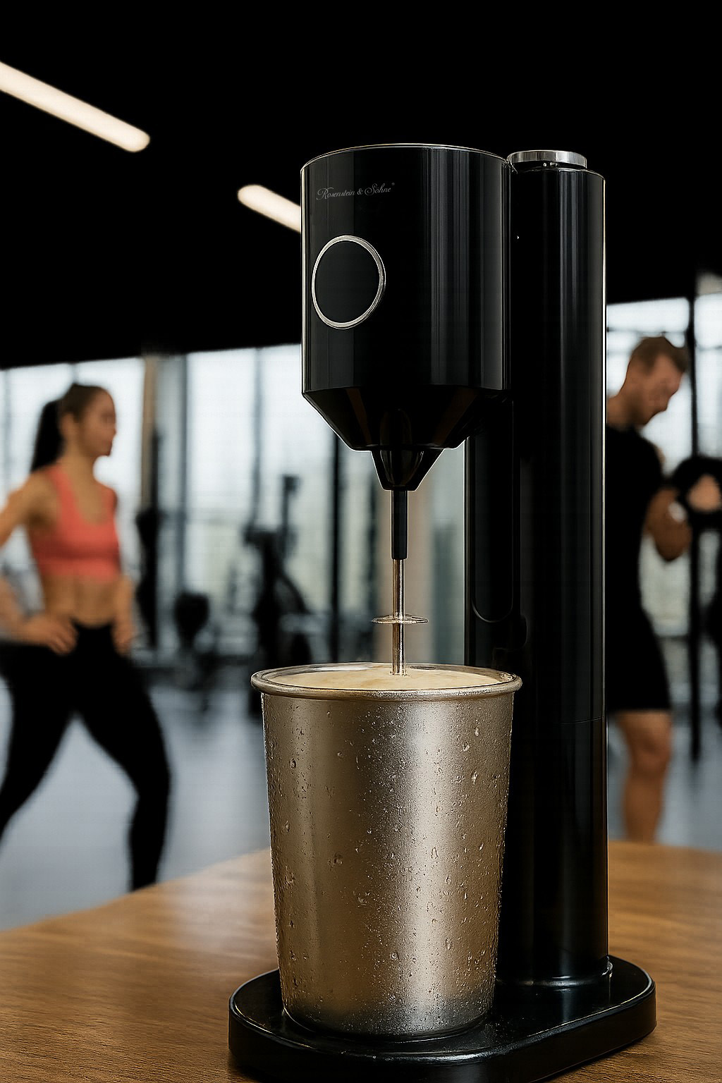 (lifepr) (Buggingen, 24.07.2025) Fit und gesund mit Obst und Protein: Der elektrische Drink-Mixer BR-550 von Rosenstein & Söhne verfügt über eine Leistung von 100 Watt sowie zwei Geschwindigkeitsstufen mit 22.000 bzw. 17.000 Umdrehungen pro Minute. Damit lassen sich Shakes und Smoothies perfekt mixen. Er ist auch ideal für Proteinshakes geeignet, die den Muskelaufbau unterstützen. Der hochwertige Edelstahlbecher mit einem Volumen von 500 ml ist spülmaschinenfest.