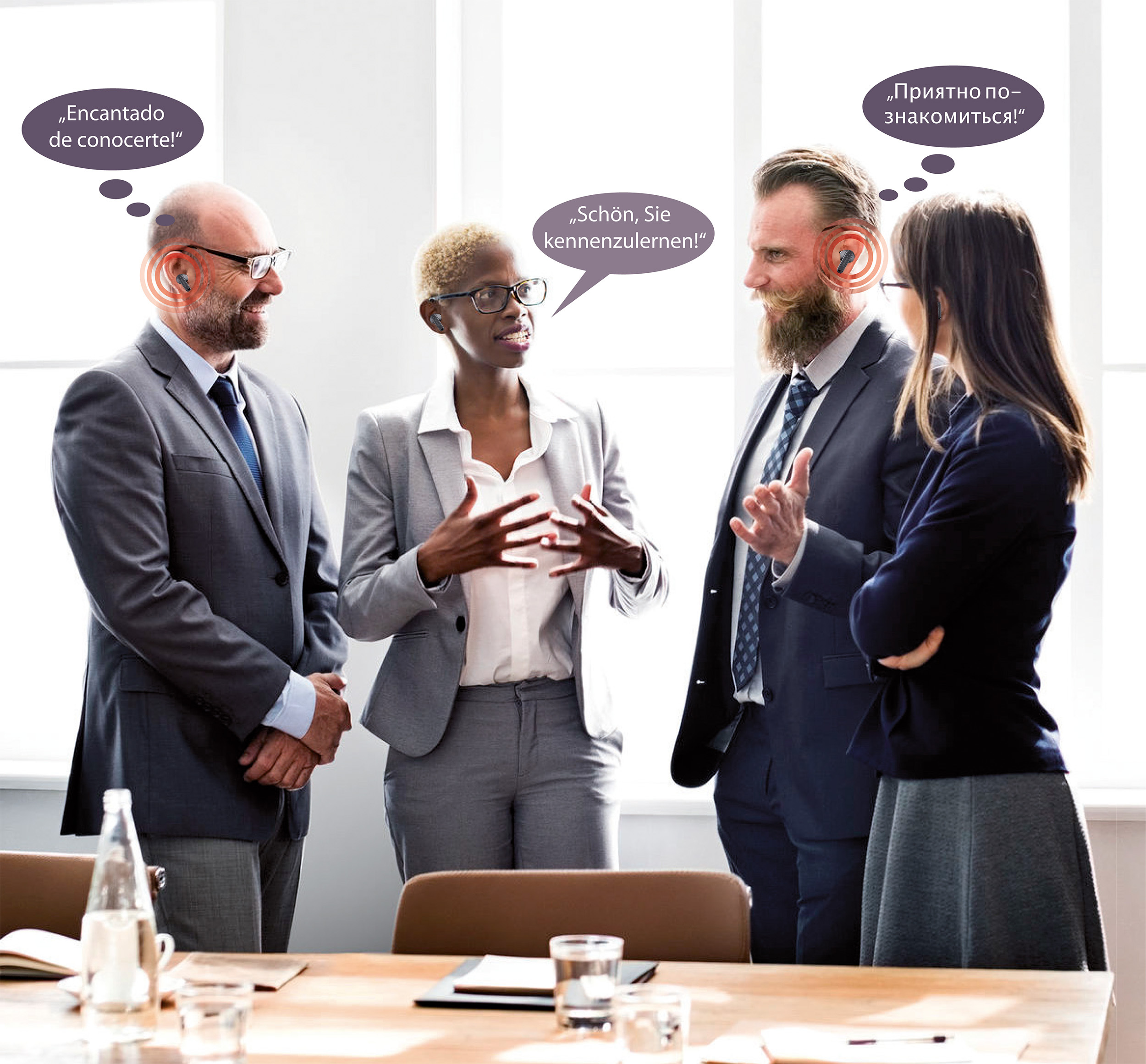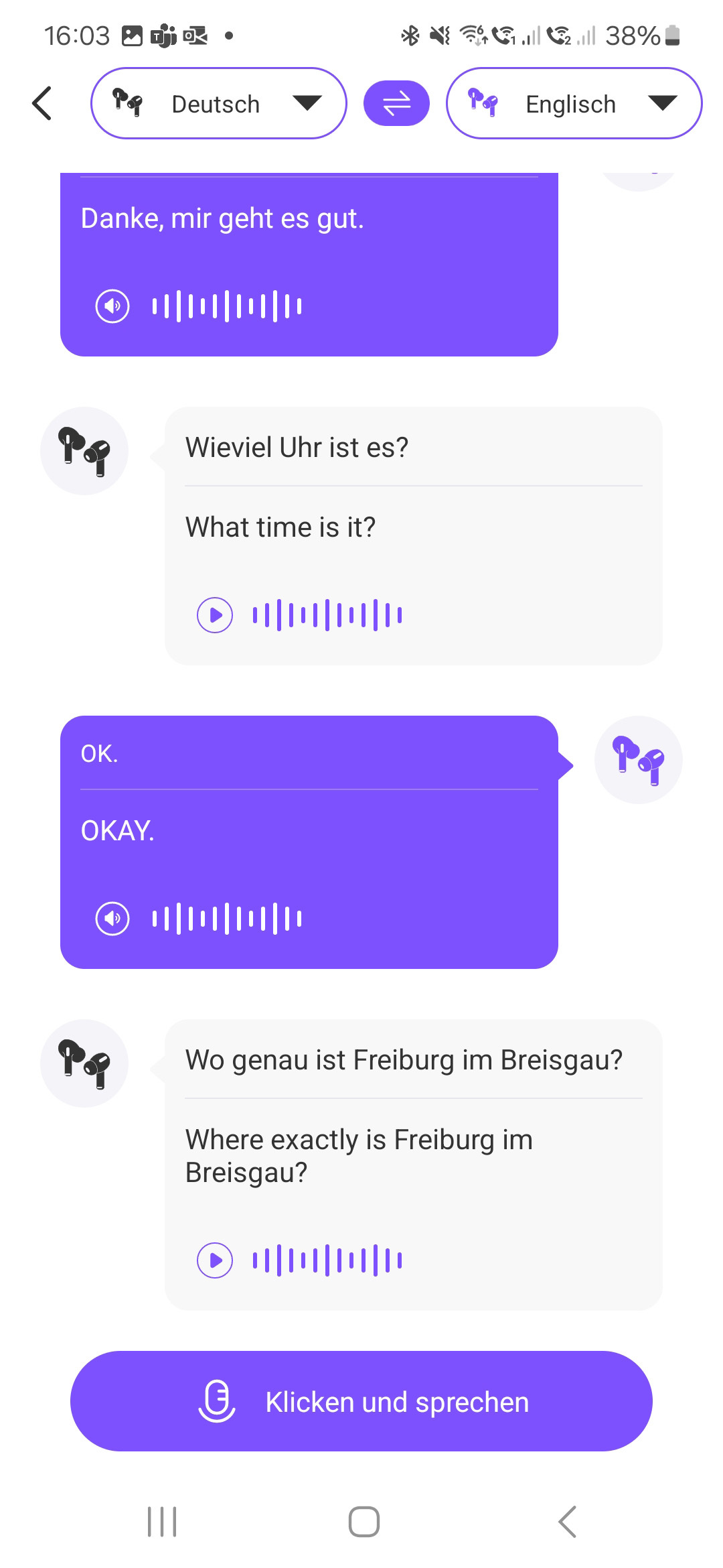 Live-Übersetzung per App: Über die kostenlose App werden Unterhaltungen, Meetings und Telefonate in bis zu 135 Sprachen in Echtzeit übersetzt. Sprachbarrieren verschwinden und man versteht den Inhalt.