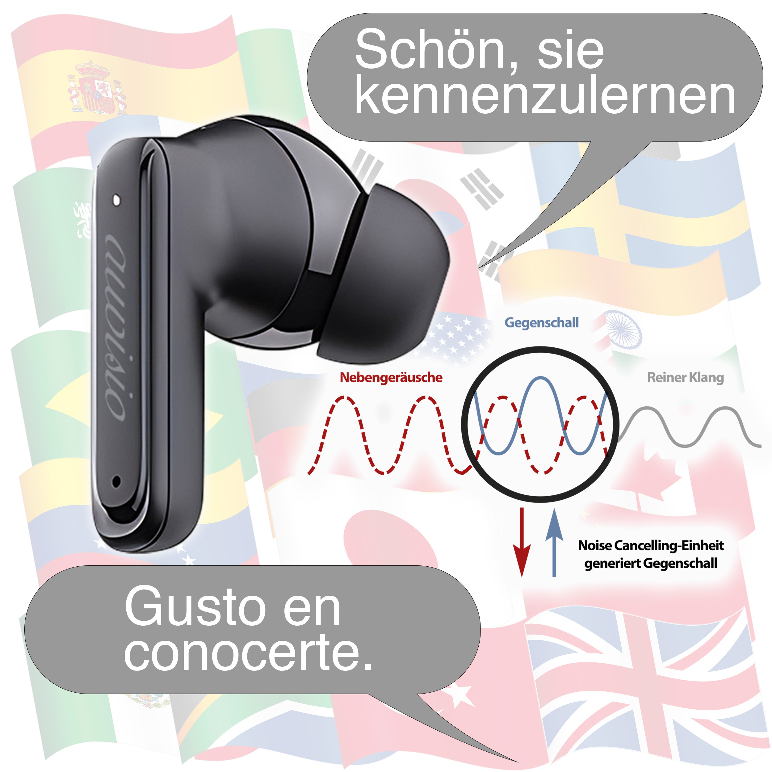 Störquellen einfach ausblenden: Der smarte Übersetzer mit In-Ear-Kopfhörern von auvisio reduziert per aktiver Geräuschunterdrückung Umgebungsgeräusche um bis zu 28 dB. So bleiben Straßenlärm, Stimmengewirr oder Maschinenbrummen außen vor - und man hört nur das, was wichtig ist.