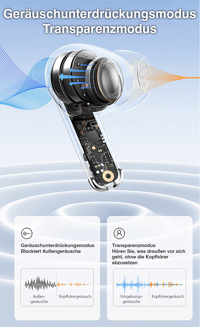 Telefonate ohne Hintergrundgeräusche: Vier integrierte ENC-Mikrofone filtern Umgebungsgeräusche wirkungsvoll aus den Gesprächen. Selbst in belebten Räumen oder an Verkehrsknotenpunkten bleiben die Worte klar verständlich.
