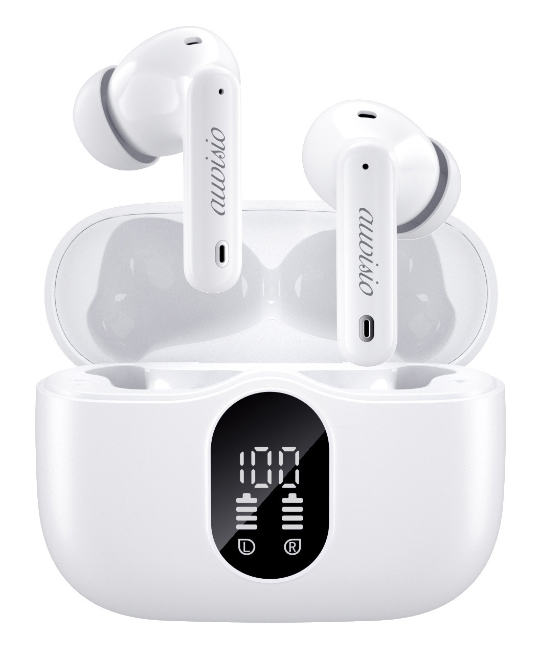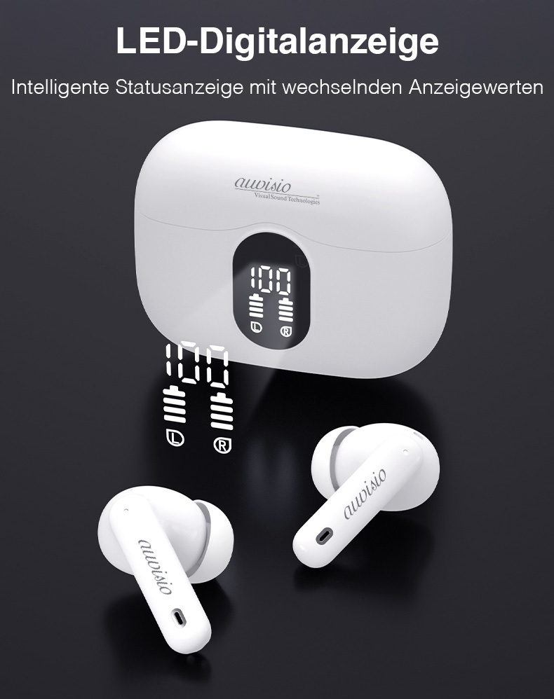 auvisio Kabellose In-Ear-Kopfhörer IHS-480.bt mit Ladecase, Noise-Cancelling, weiß