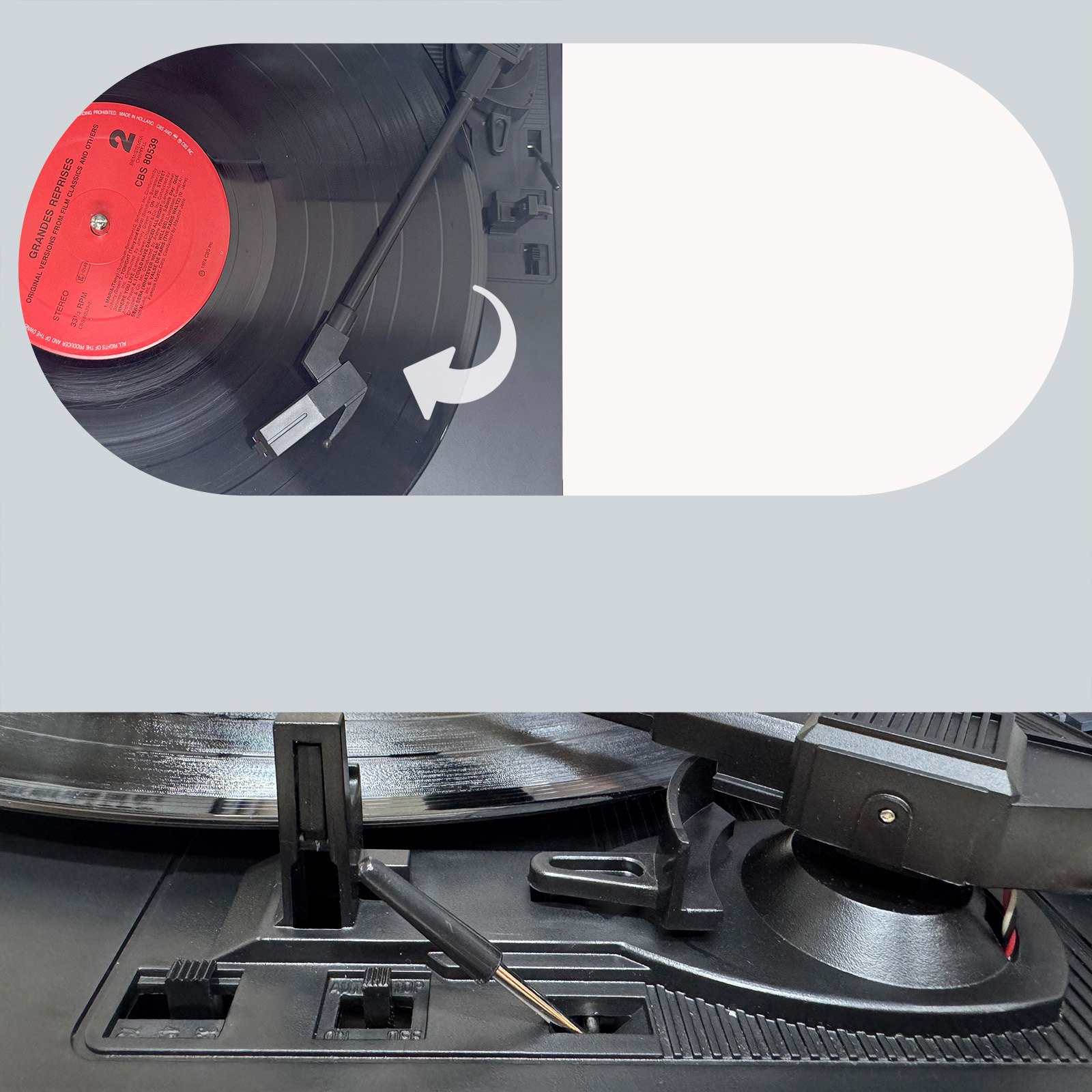 Die Schallplatten lassen sich für die originalgetreue Wiedergabe in drei Geschwindigkeiten mit 33, 45 oder 78 U/Min. abspielen - ein Musikerlebnis wie früher.
