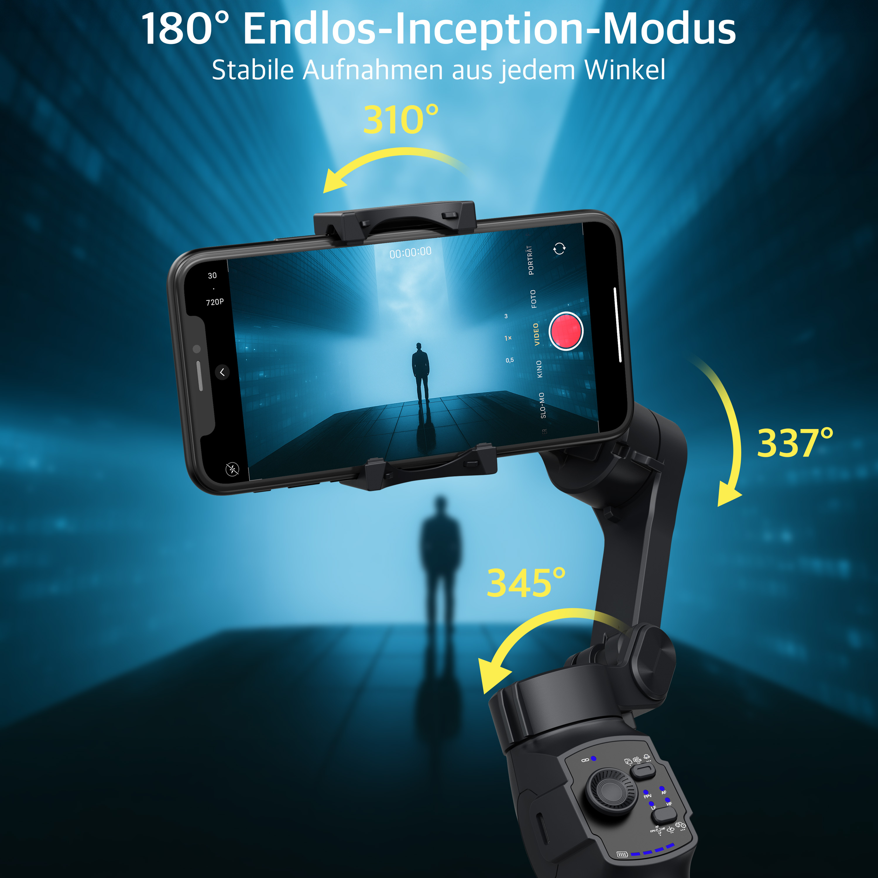 Stabile Aufnahmen aus jedem Winkel: Mit dem 3-Achsen-Smartphone-Stabilisator von Somikon erstellt man flüssige Videos im Gehen, Laufen und beim Filmen aus der Hand.