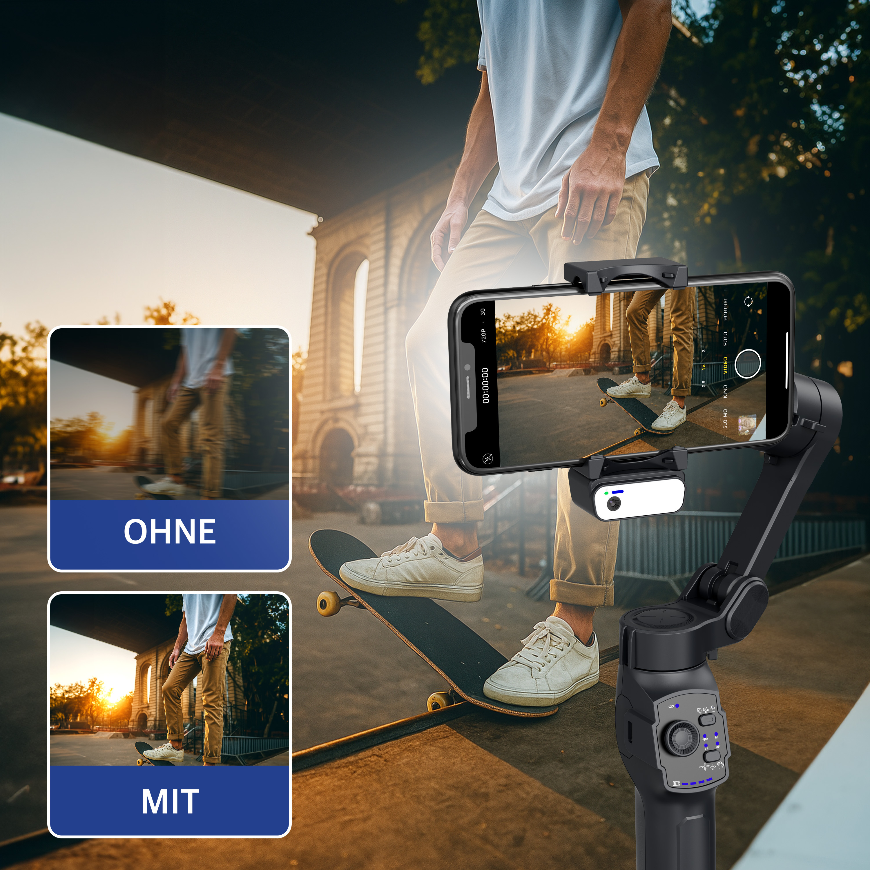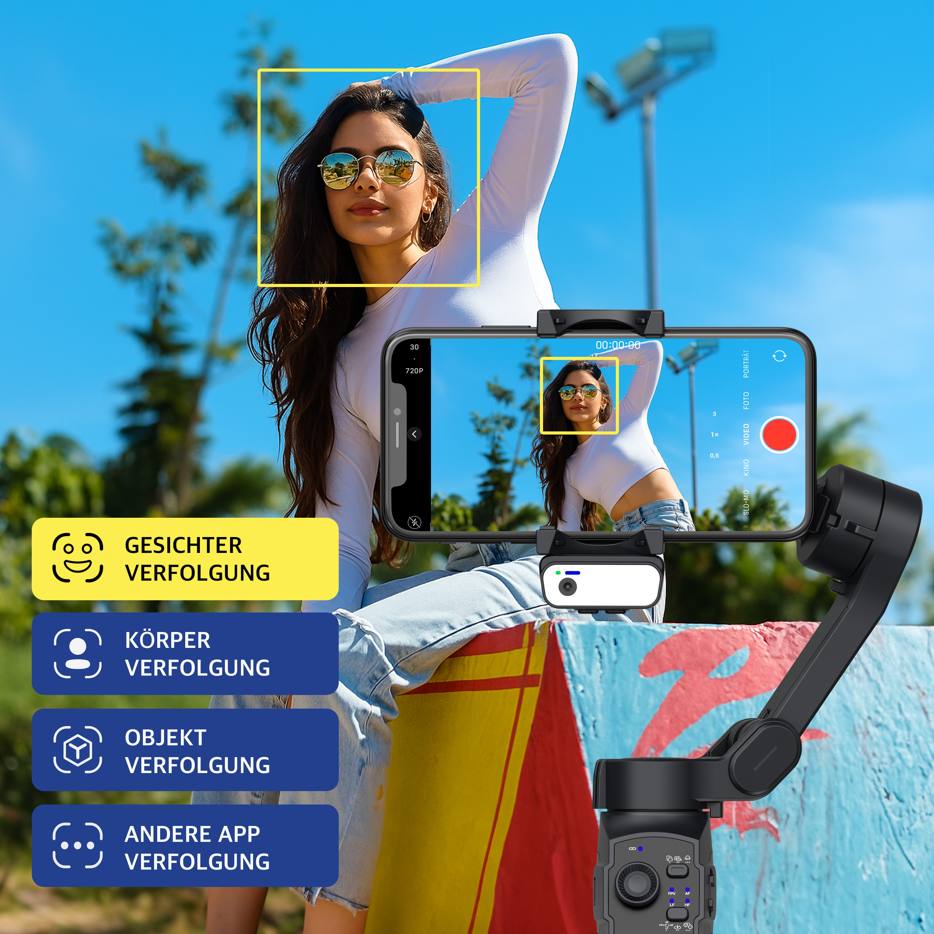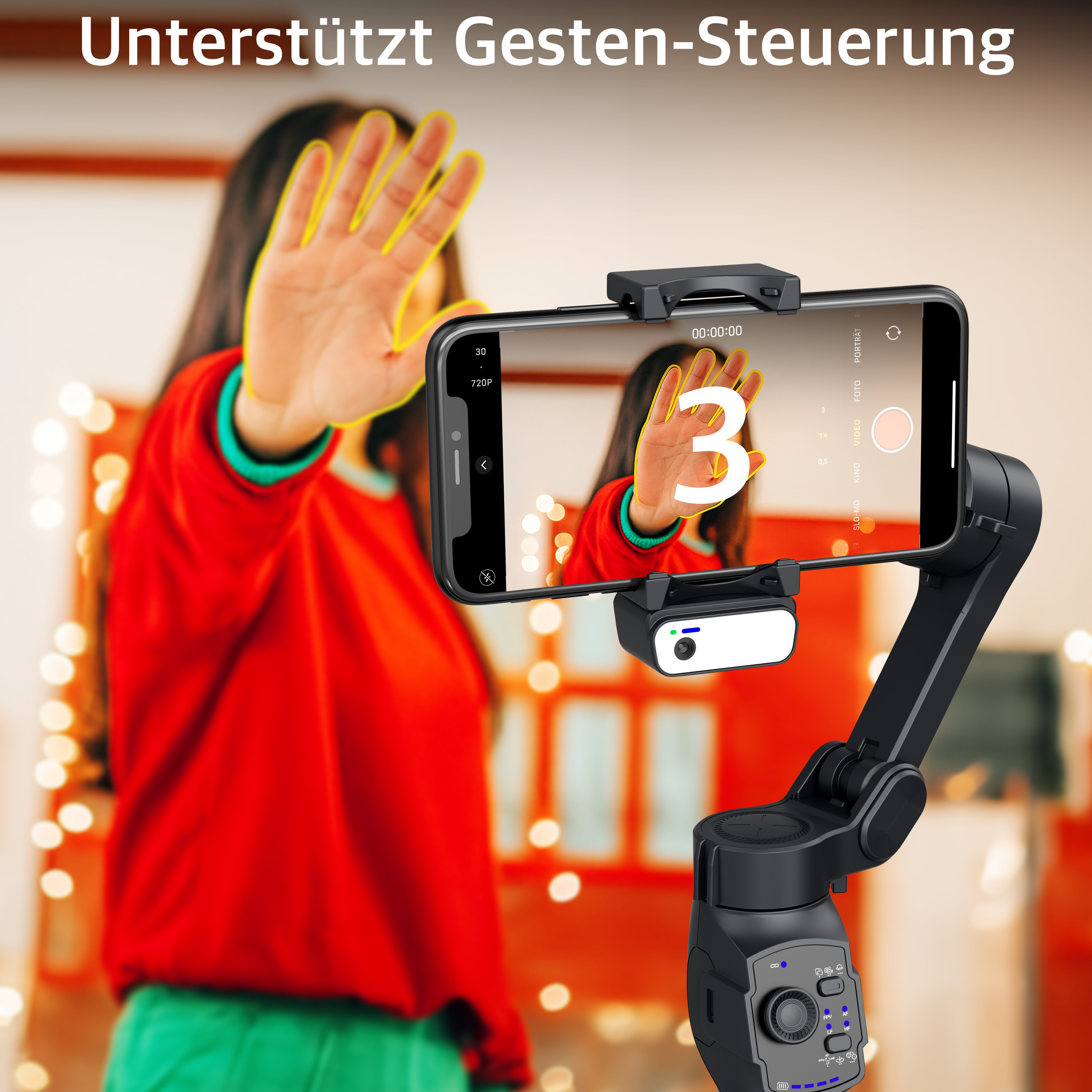 Somikon KI-Tracking-Stabilisator für Smartphone bis 7,7", 3 Achsen, Licht, App