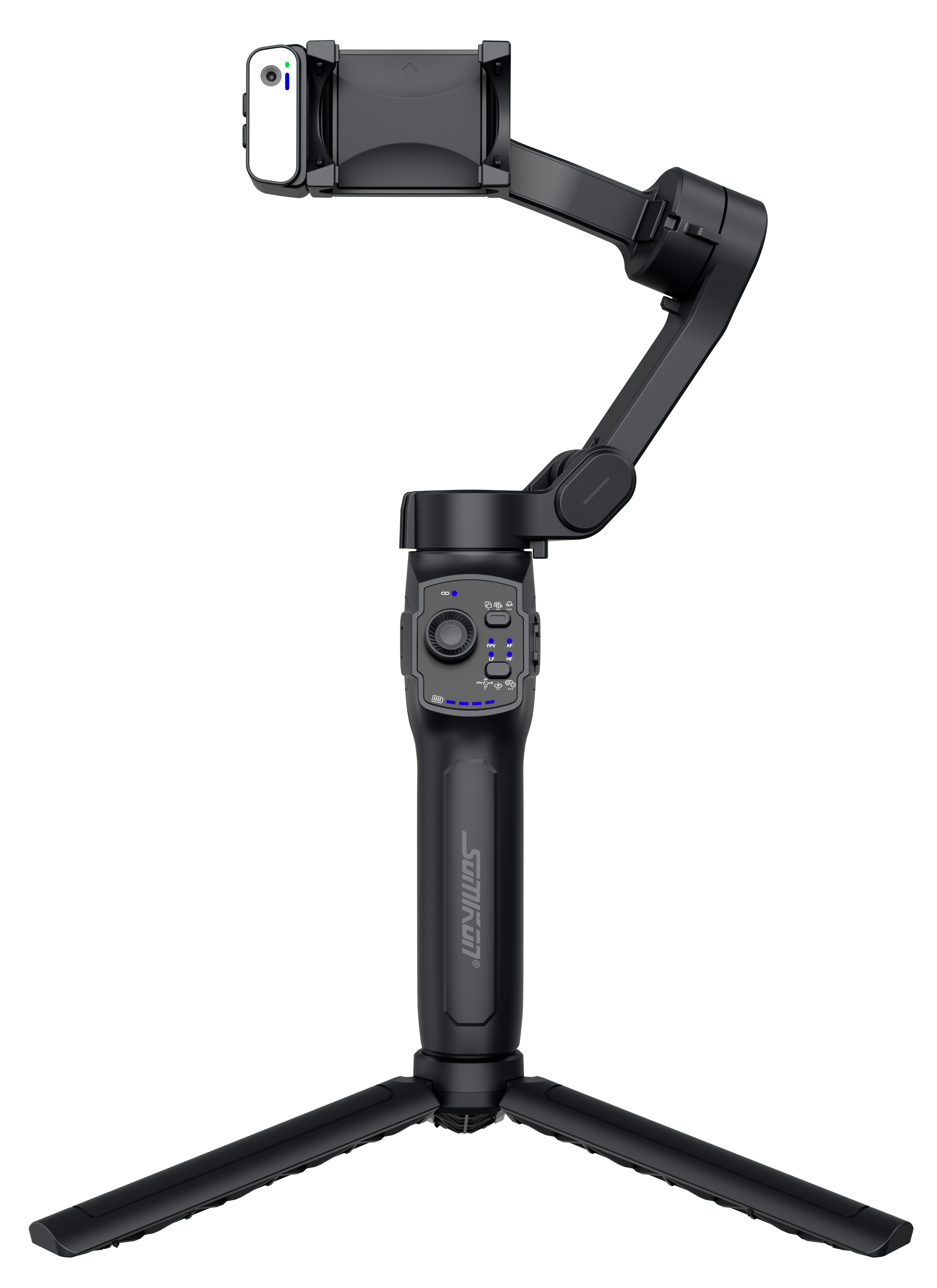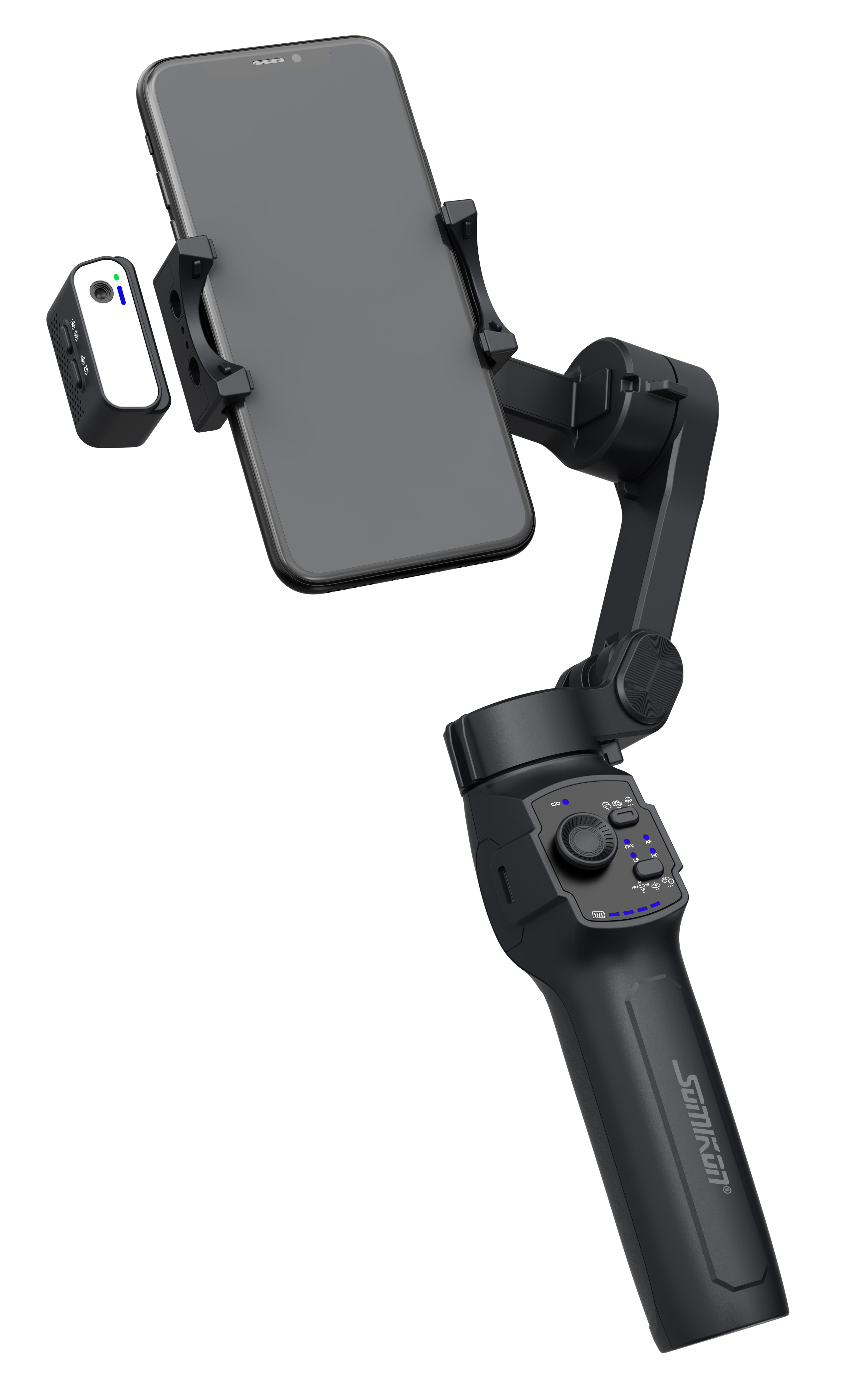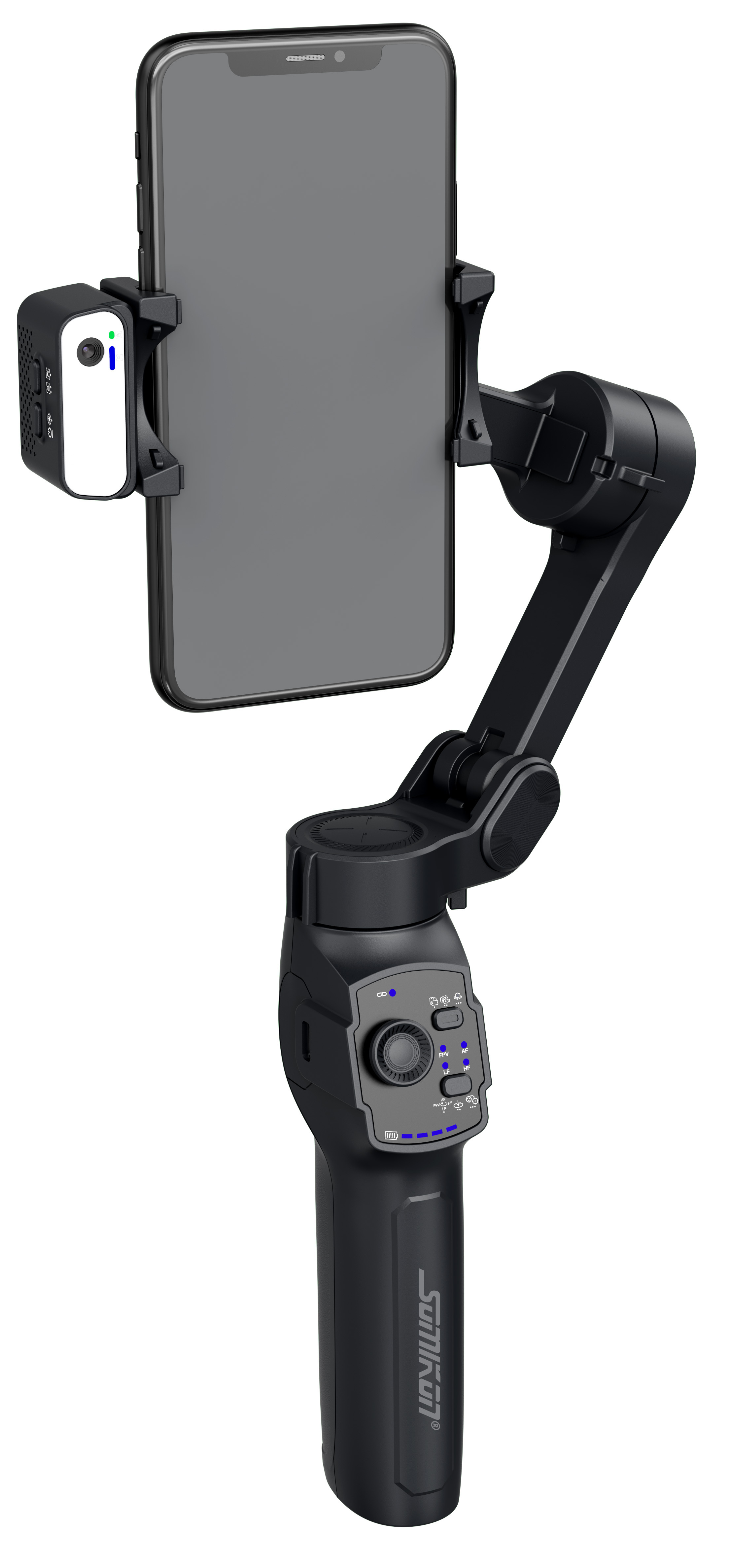Somikon KI-Tracking-Stabilisator für Smartphone bis 7,7", 3 Achsen, Licht, App