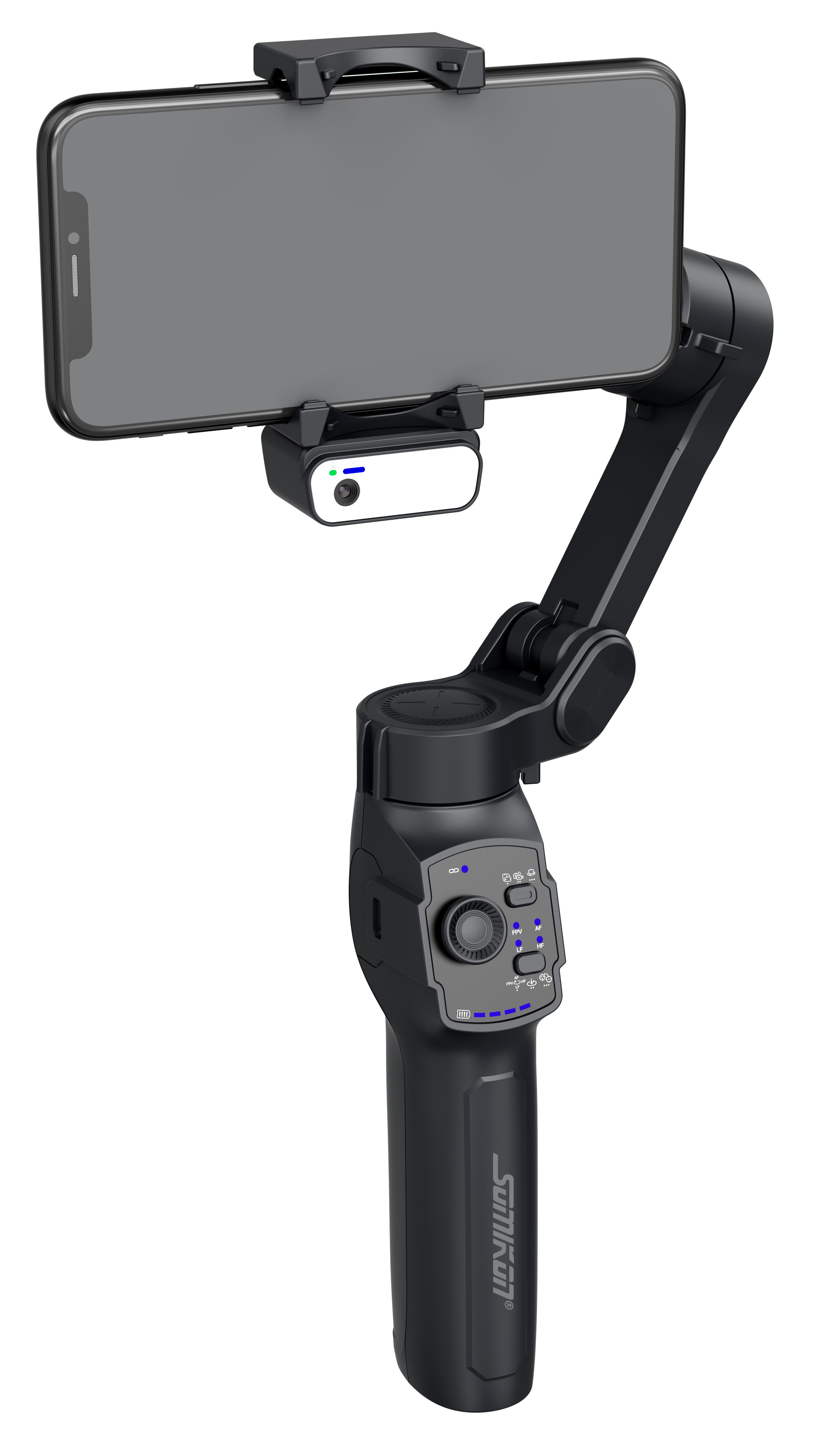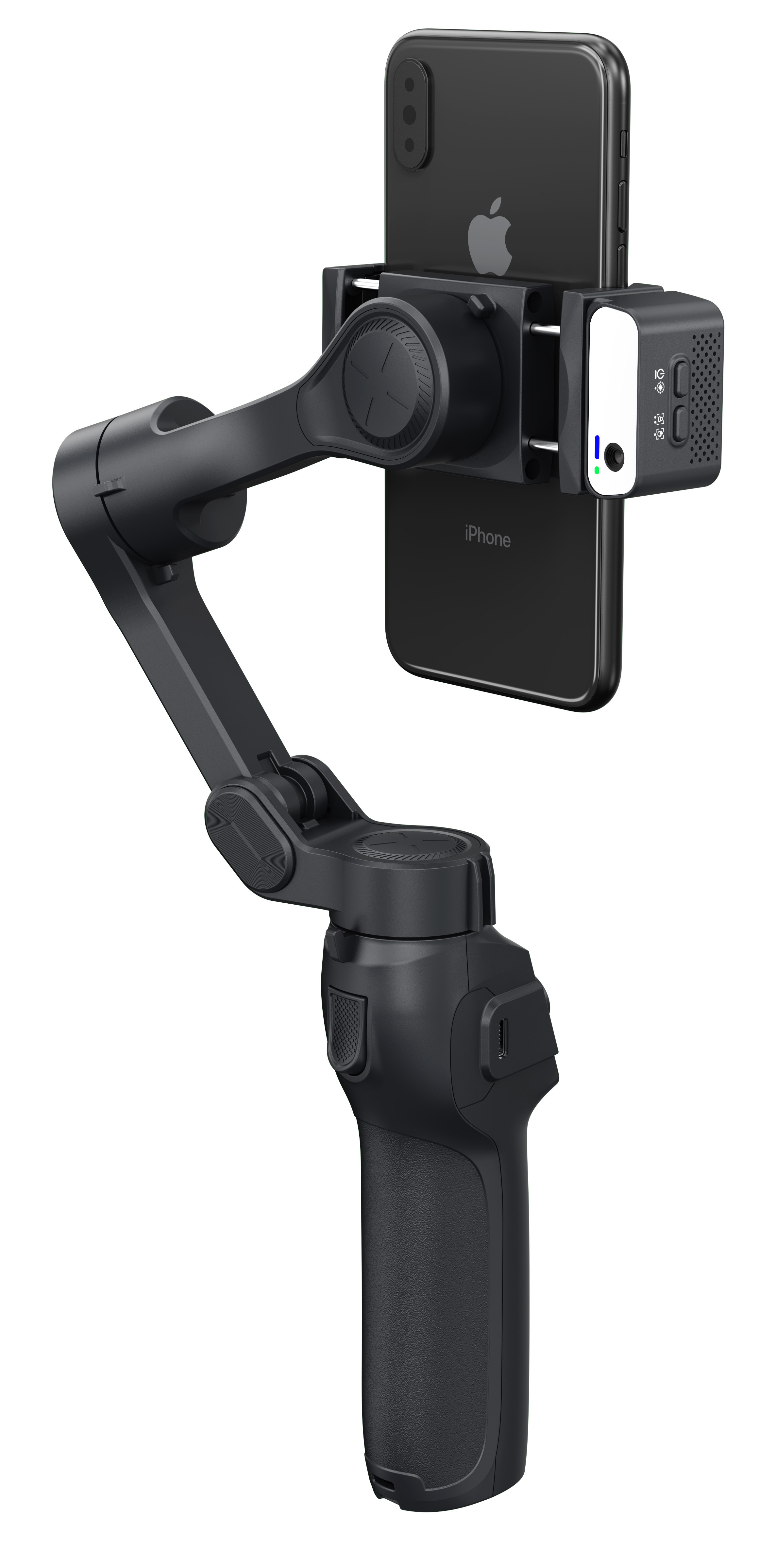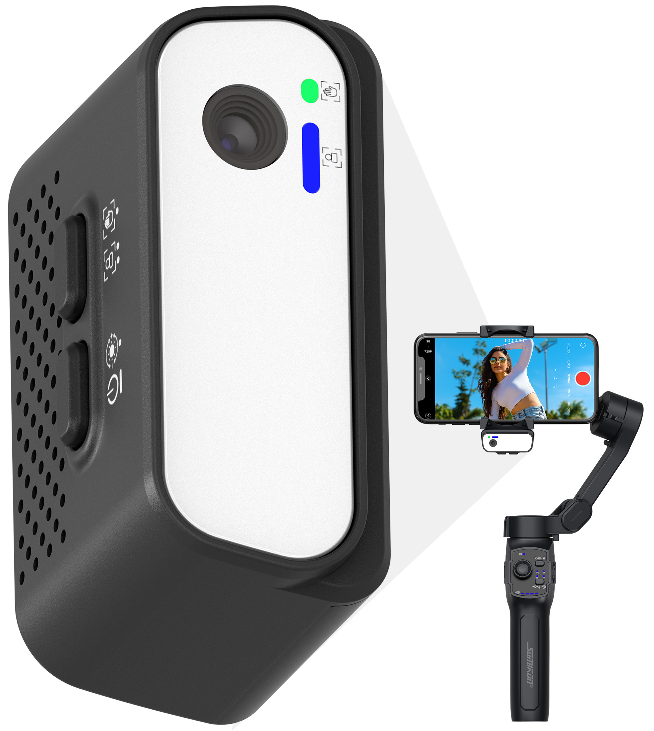 Immer perfekt im Bild bleiben: Ist der magnetisch haftende Tracking-Aufsatz auf das Stativ aufgesetzt, kann das Hand-Schwebestativ Gesichter erkennen und den Bewegungen folgen!