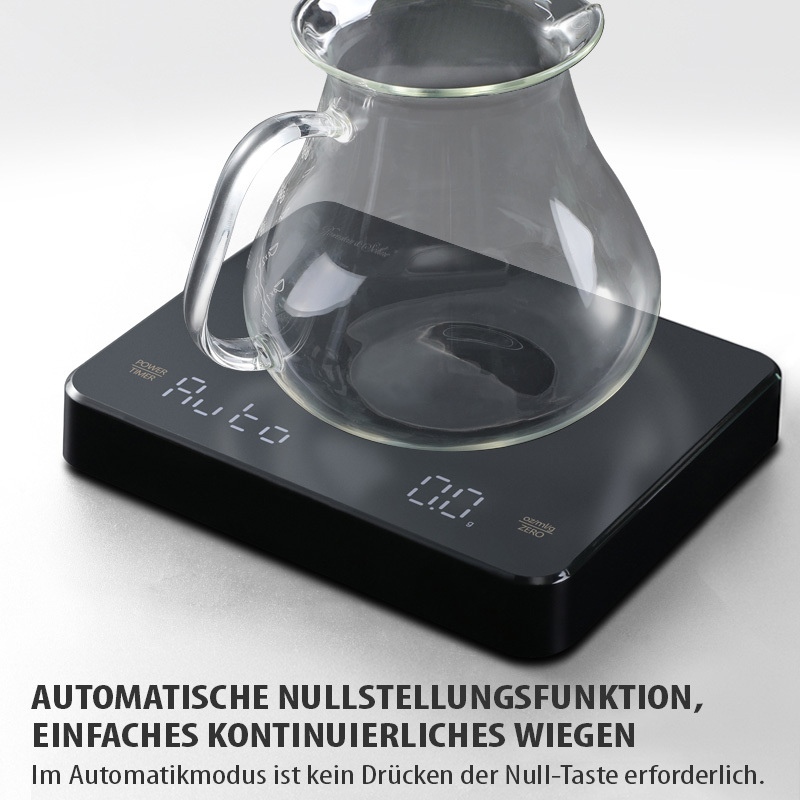 Praktisch kombiniert mit Timer: Dank integriertem Timer behält man die ideale Brühzeit jederzeit im Blick. Die Zeitmessung wird direkt beim Aufbrühen gemessen, so dass man punktgenau stoppen kann. Damit gelingt der Kaffee immer auf den Punkt, ganz gleich ob schneller Espresso oder sanfter Handaufguss.