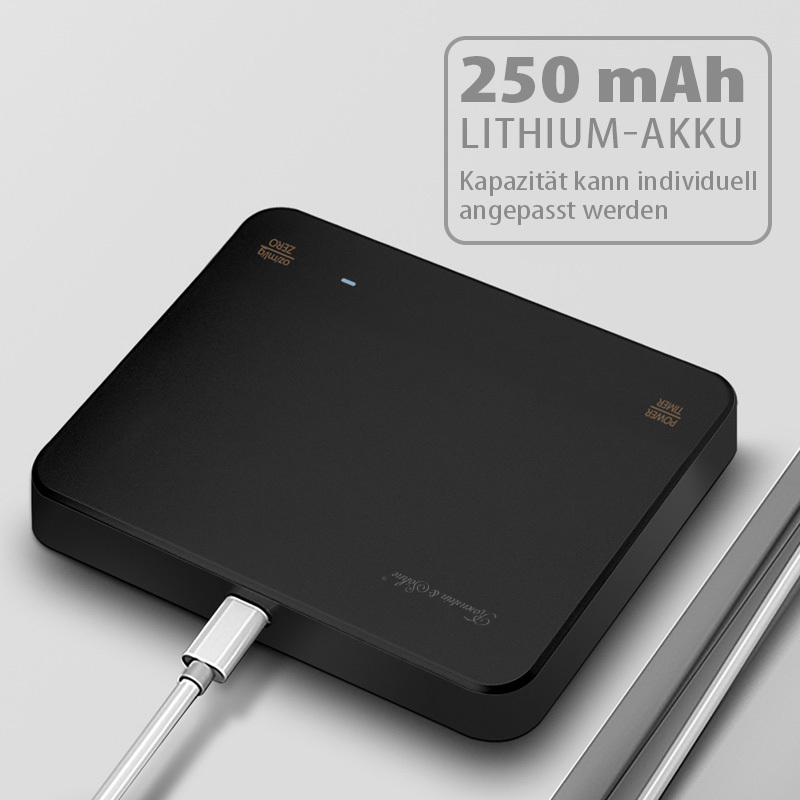 Kabelloser Betrieb per Akku: Die Waage kann man überall nutzen, ganz ohne Steckdose in der Nähe. Der integrierte Li-Ion-Akku wird bequem per USB-C-Kabel geladen. So ist die Waage immer einsatzbereit - in der Küche, auf der Terrasse oder beim Camping. Und das ganz ohne Batterien wechseln zu müssen.
