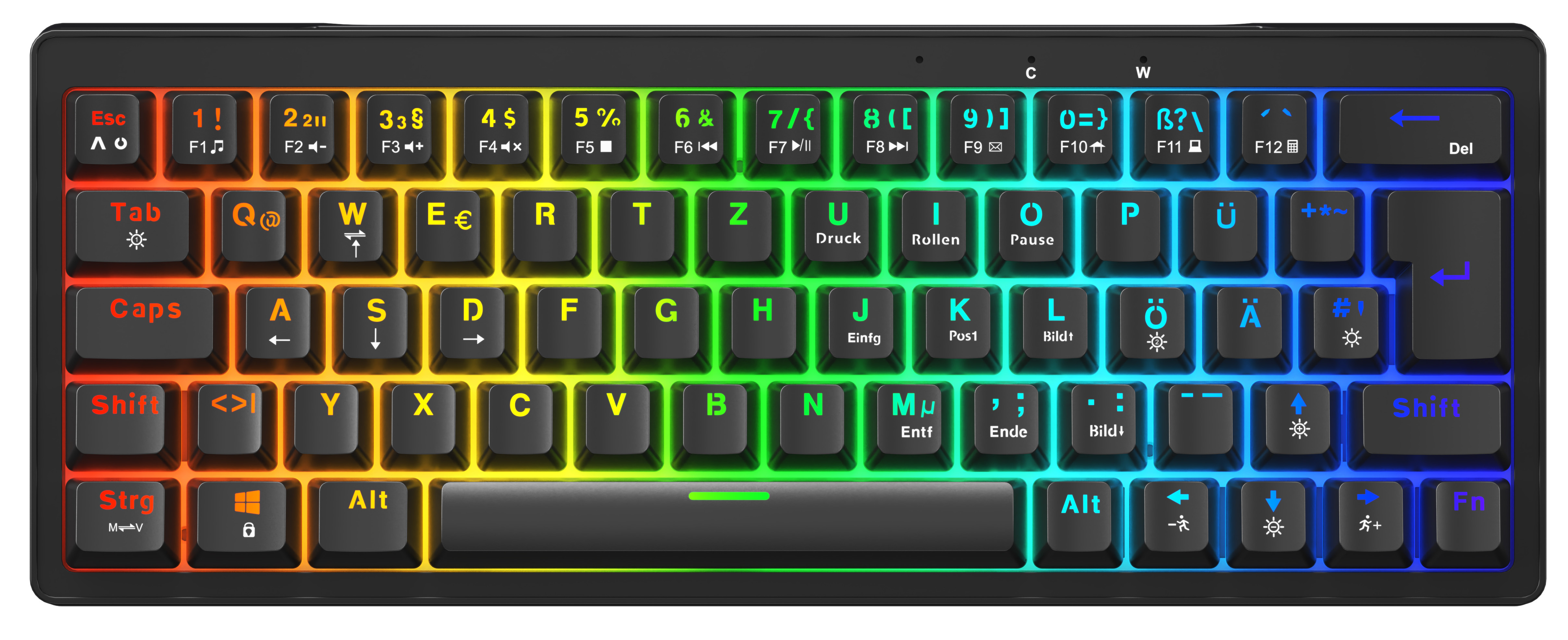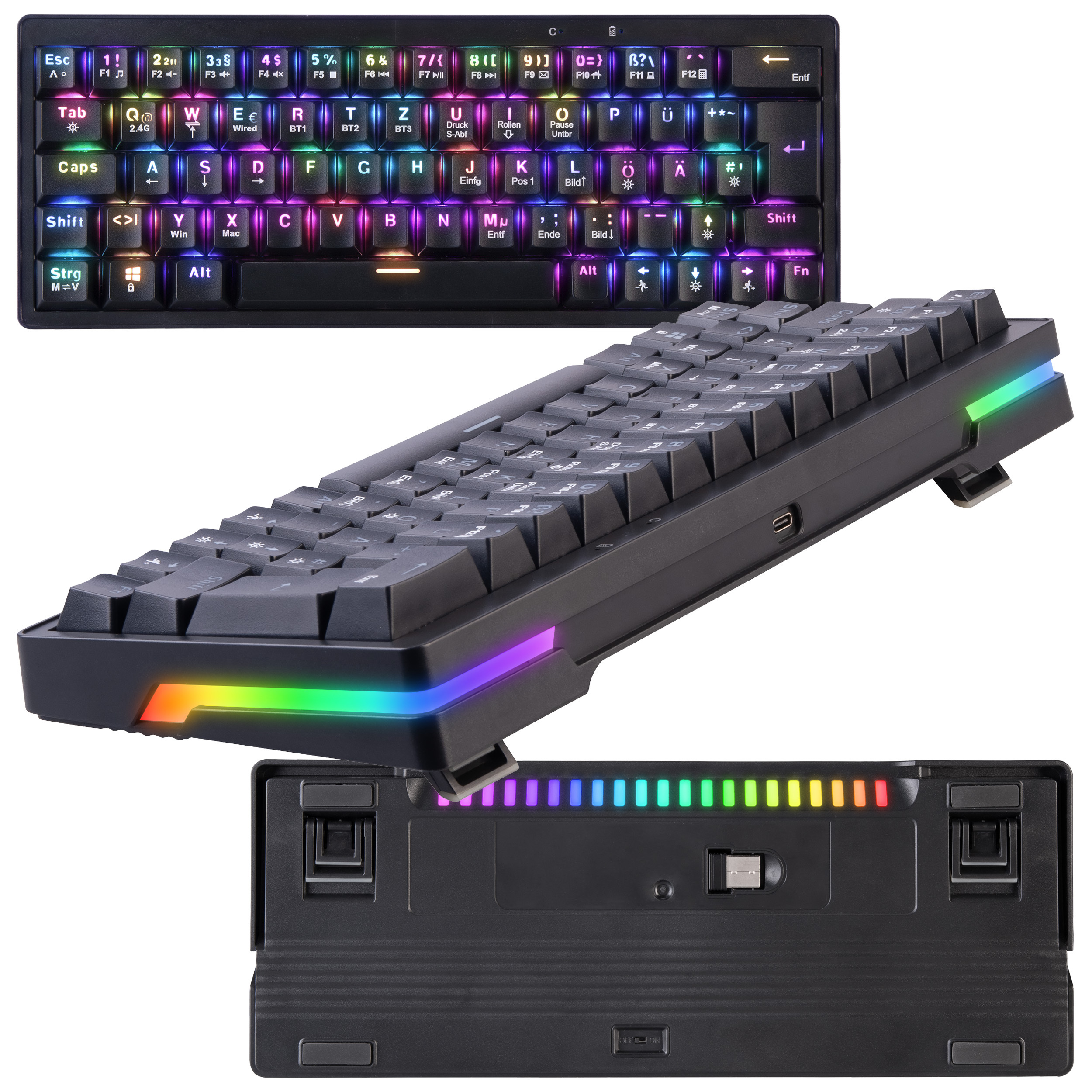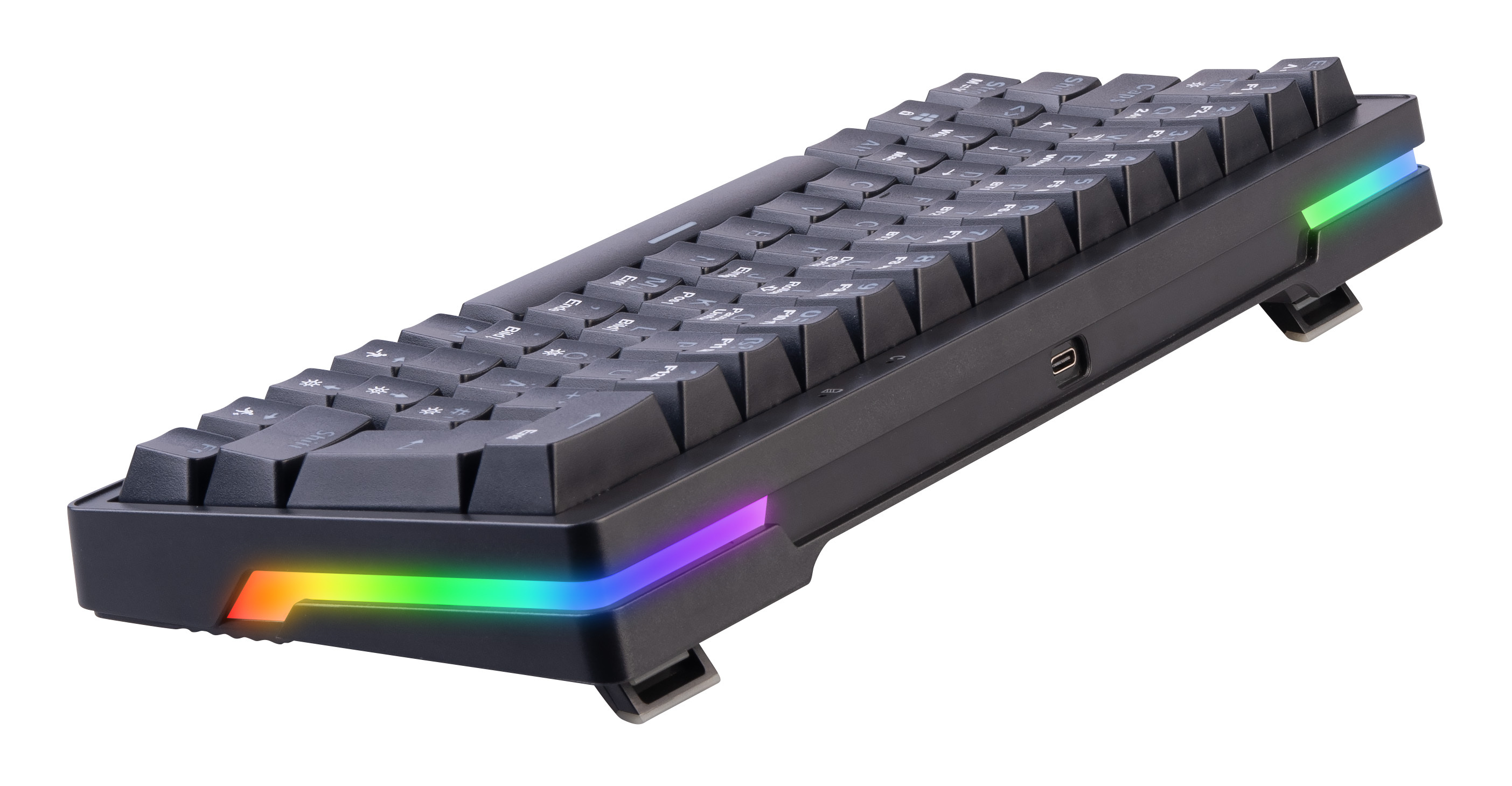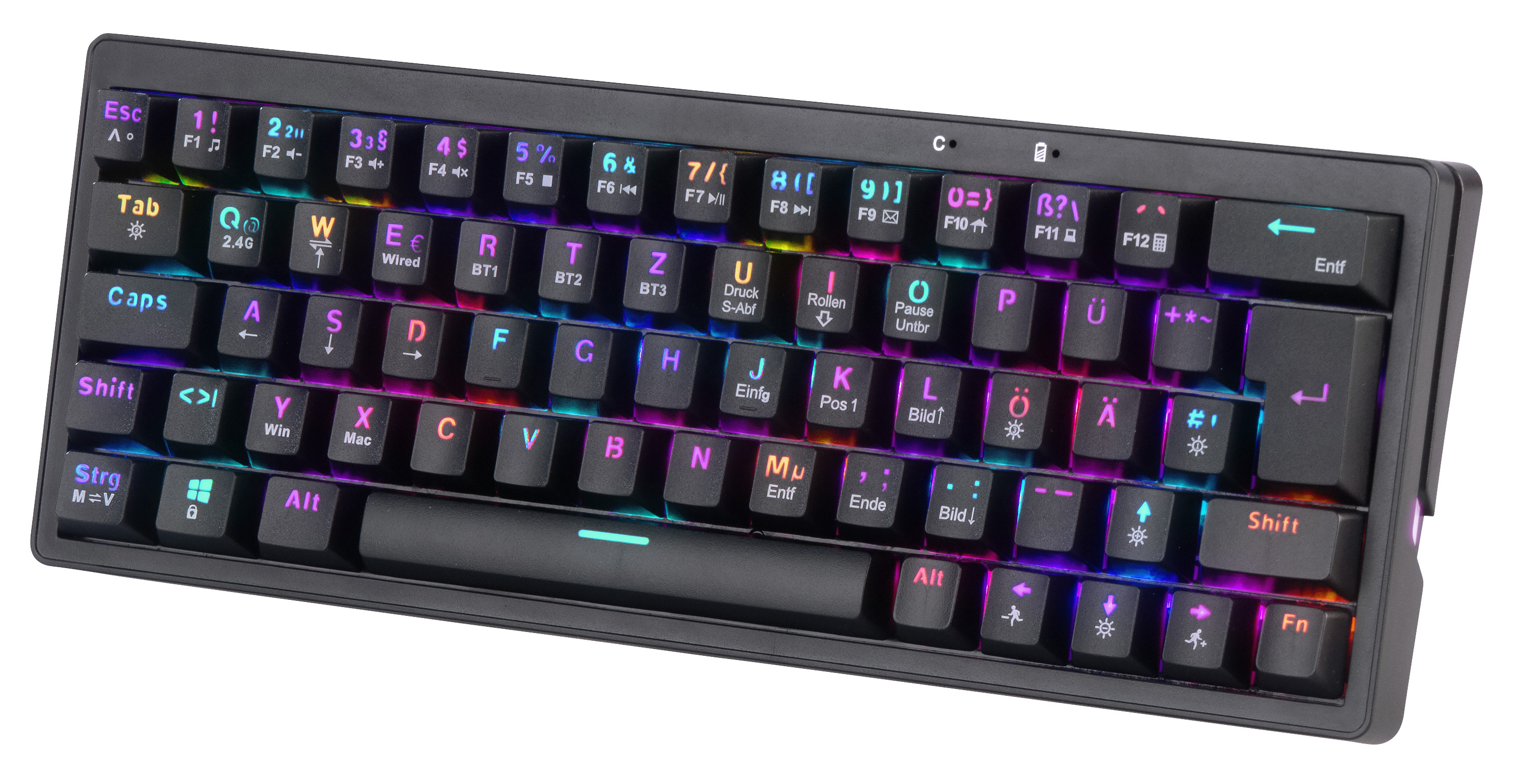 (lifepr) (Buggingen, 19.08.2025) Die GeneralKeys mechanische 60-%-Funk-Tastatur bietet das QWERTZ-Layout mit 64 Anti-Ghosting-Tasten in ultrakompakter Bauweise auf nur 60 Prozent der Größe einer Standard-Tastatur. Rote Schalter sorgen für lineare und leise Eingaben beim Arbeiten und Gaming, während die RGB-Beleuchtung 7 Farben und 22 verschiedene Leucht-Modi zur Verfügung stellt. Drei Bluetooth-Kanäle ermöglichen flexibles Umschalten zwischen verschiedenen Geräten ohne erneute Kopplung. Die Tastatur verfügt über eine einstellbare Neigung in zwei Stufen für ergonomischen Komfort während längerer Nutzung. Das kompakte Design kombiniert mechanische Präzision mit kabelloser Flexibilität für Büro und Gaming-Anwendungen!
