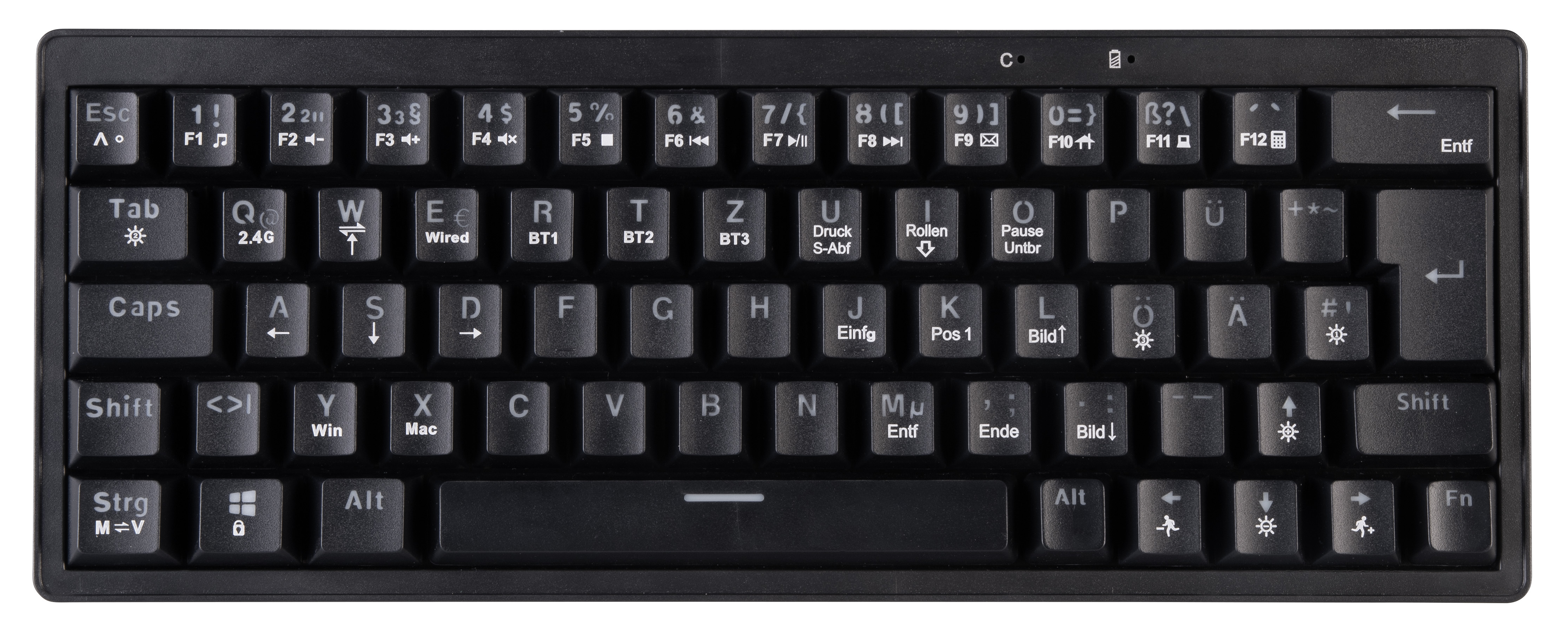 Vielseitige Verbindungsmöglichkeiten: 3 Bluetooth-Kanäle, 2,4-GHz-Funkverbindung per USB-Dongle und USB-C stehen zur Verfügung, um die Tastatur flexibel mit verschiedenen Geräten zu verbinden.