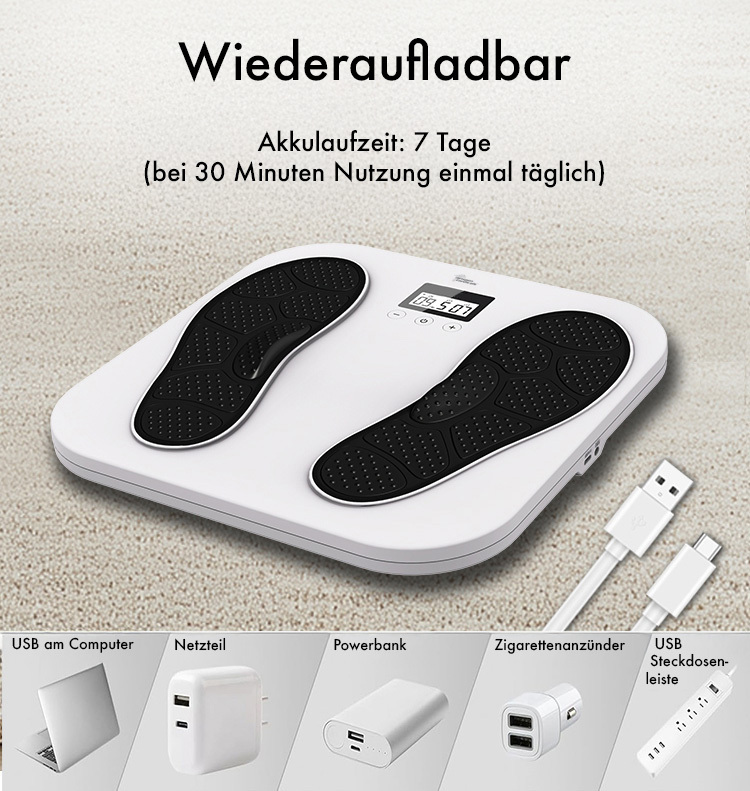Mobil und ortsunabhängig einsetzbar: Dank Akkubetrieb ist der Durchblutungsstimulator unabhängig von Steckdosen nutzbar. Der praktische Tragegriff ermöglicht einen einfachen Transport ins Wohn- oder Schlafzimmer oder sogar ins Büro.