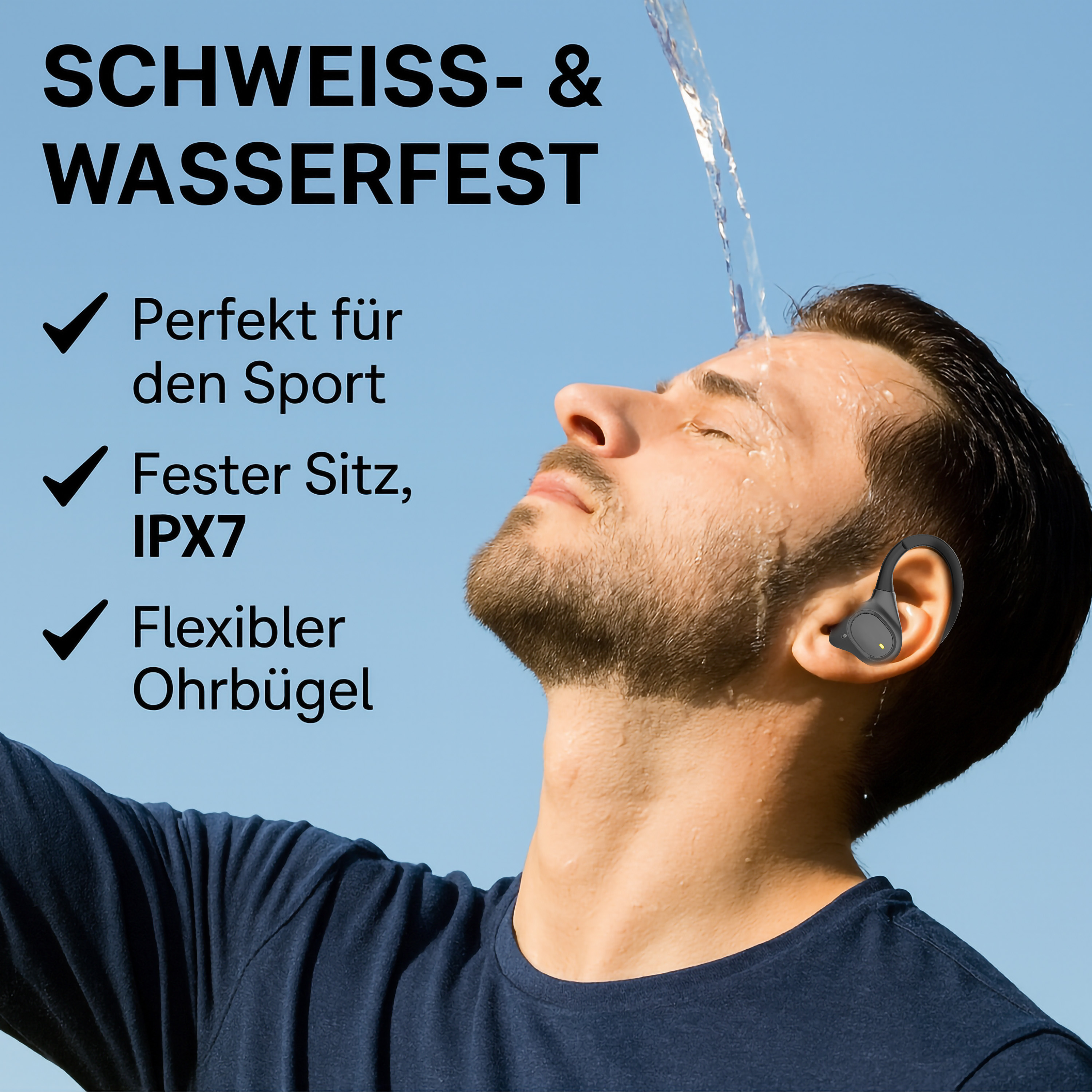 Wasserdicht und sicher: Musik beim Schwimmen und Baden:Die kabellosen In-Ear-Kopfhörer von auvisio sind wasserdicht konzipiert und eignen sich damit für das Schwimmtraining ebenso wie für entspannte Momente in der Badewanne. Dank integrierter Ohrbügel bleiben die Ohrhörer auch bei intensiven Bewegungen sicher im Ohr. Die passgenaue In-Ear-Bauweise schirmt Außengeräusche wirksam ab und ermöglicht ungestörten Hörgenuss.
