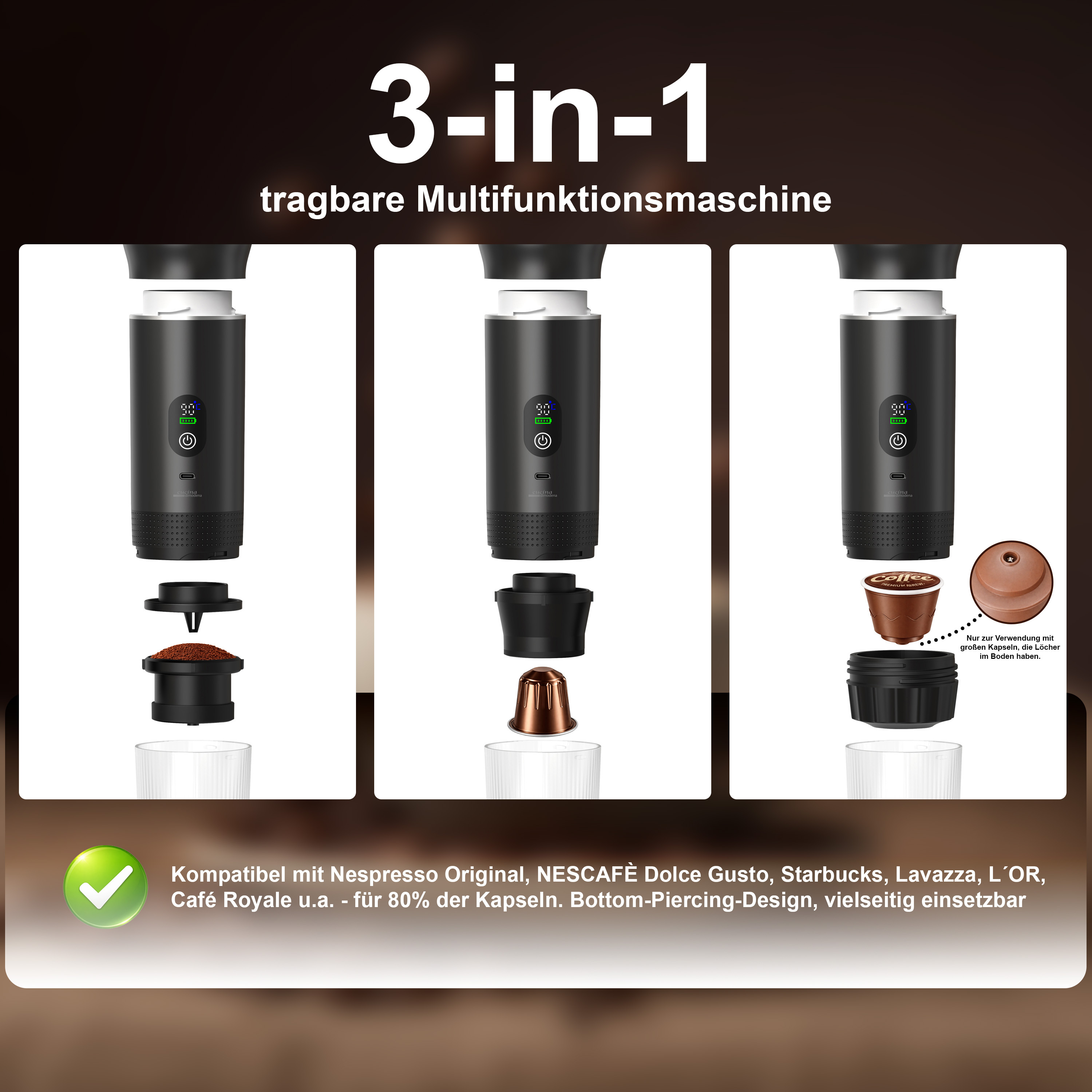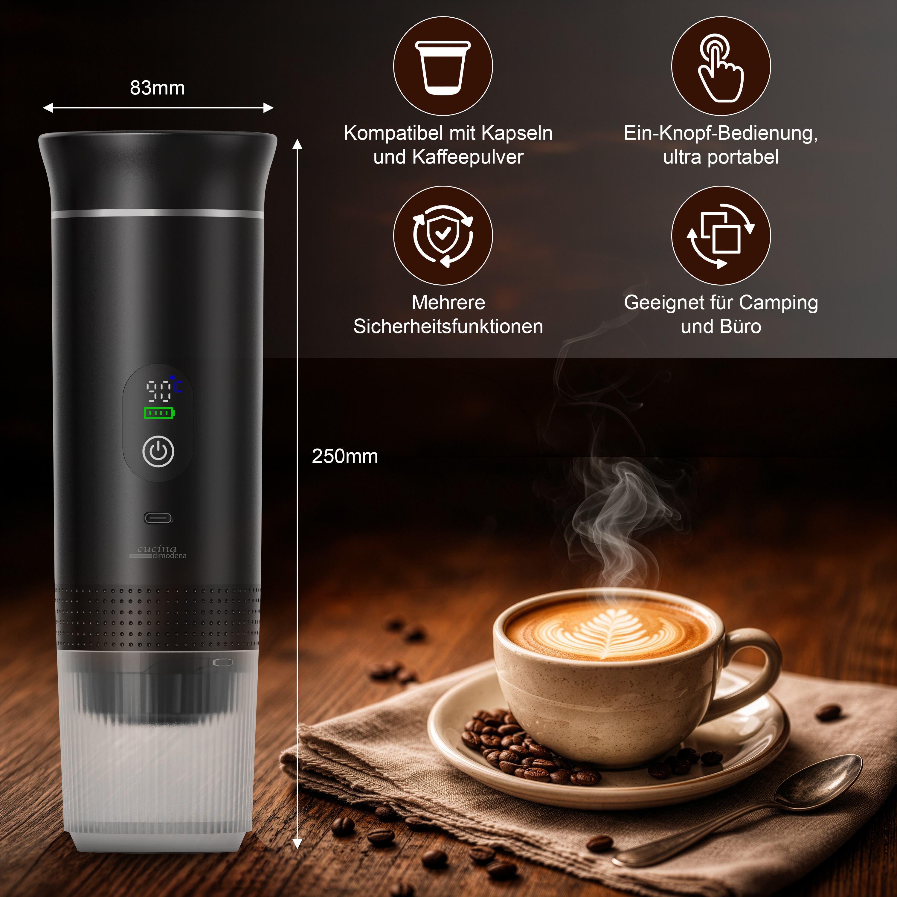Cucina di Modena 2er-Set Akku-Espressomaschine/Wasserkocher, 20 bar, für Pulver und Kapseln