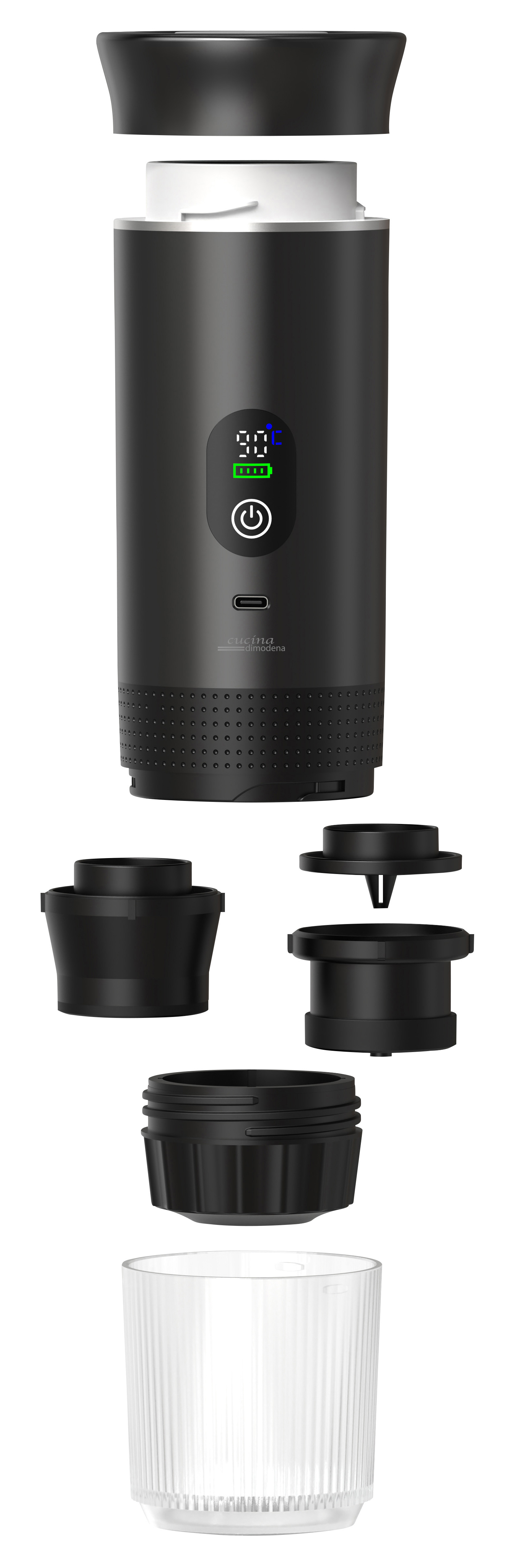 Mobiler Espressogenuss: Frisch gebrühter Espresso – unabhängig vom Standort. Die Akku-Espressomaschine von Cucina die Modena erhitzt das Wasser auf Wunsch selbst, ein separater Wasserkocher ist nicht nötig. Wer bereits heißes Wasser einfüllt, verlängert damit die Akkulaufzeit. Auch Cold-Brew-Zubereitungen sind möglich. Ob beim Camping, auf Ausflügen oder unterwegs: Espresso gelingt genau so, wie er schmecken soll.