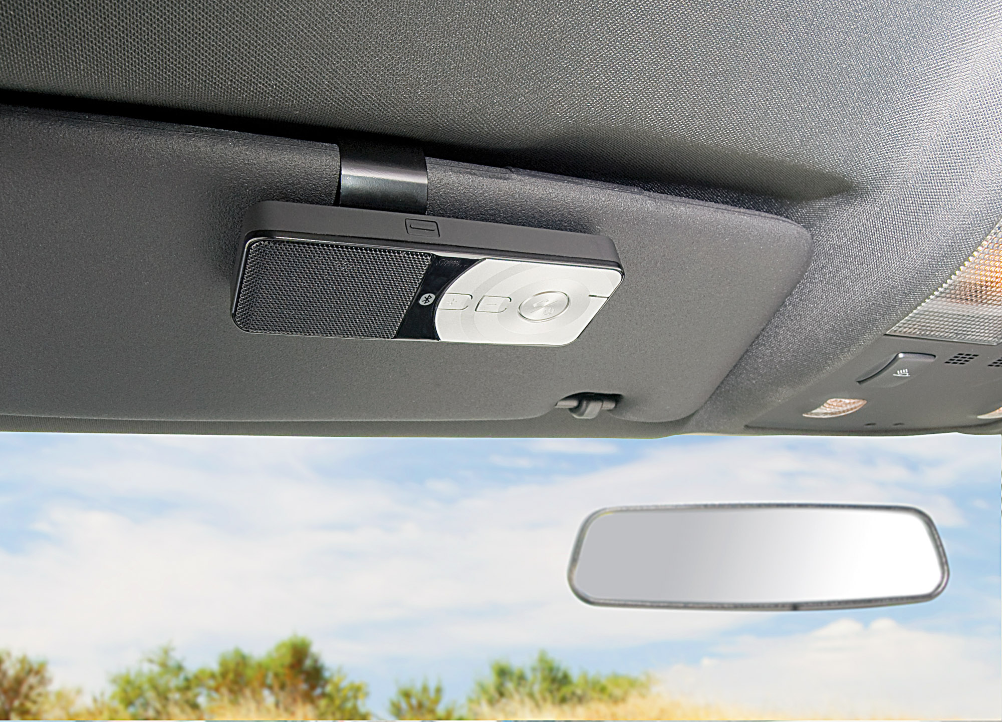 Sicherheit ganz ohne Kabelsalat und aufwendige Montage: Der Freisprecher ist blitzschnell an die Sonnenblende geklemmt, angeschlossen und betriebsbereit. Das Handy oder iPhone bleibt während der Fahrt sicher in der Mittelkonsole, der Handtasche oder im Handschuhfach liegen.