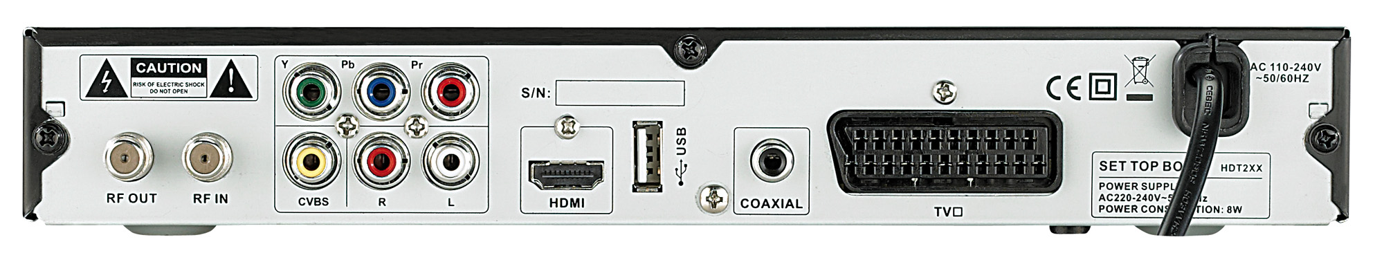 Volle Anschluss-Vielfalt: HDMI, SCART, USB2.0, CVBS, Komponenten-Cinch YUV, Audio Digital (koaxial), Audio analog (Cinch), Antenne In/Out