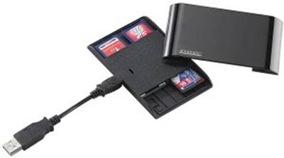 - Verbindet bis zu 4 SD/SDHC-Karten zu einer USB-Festplatte