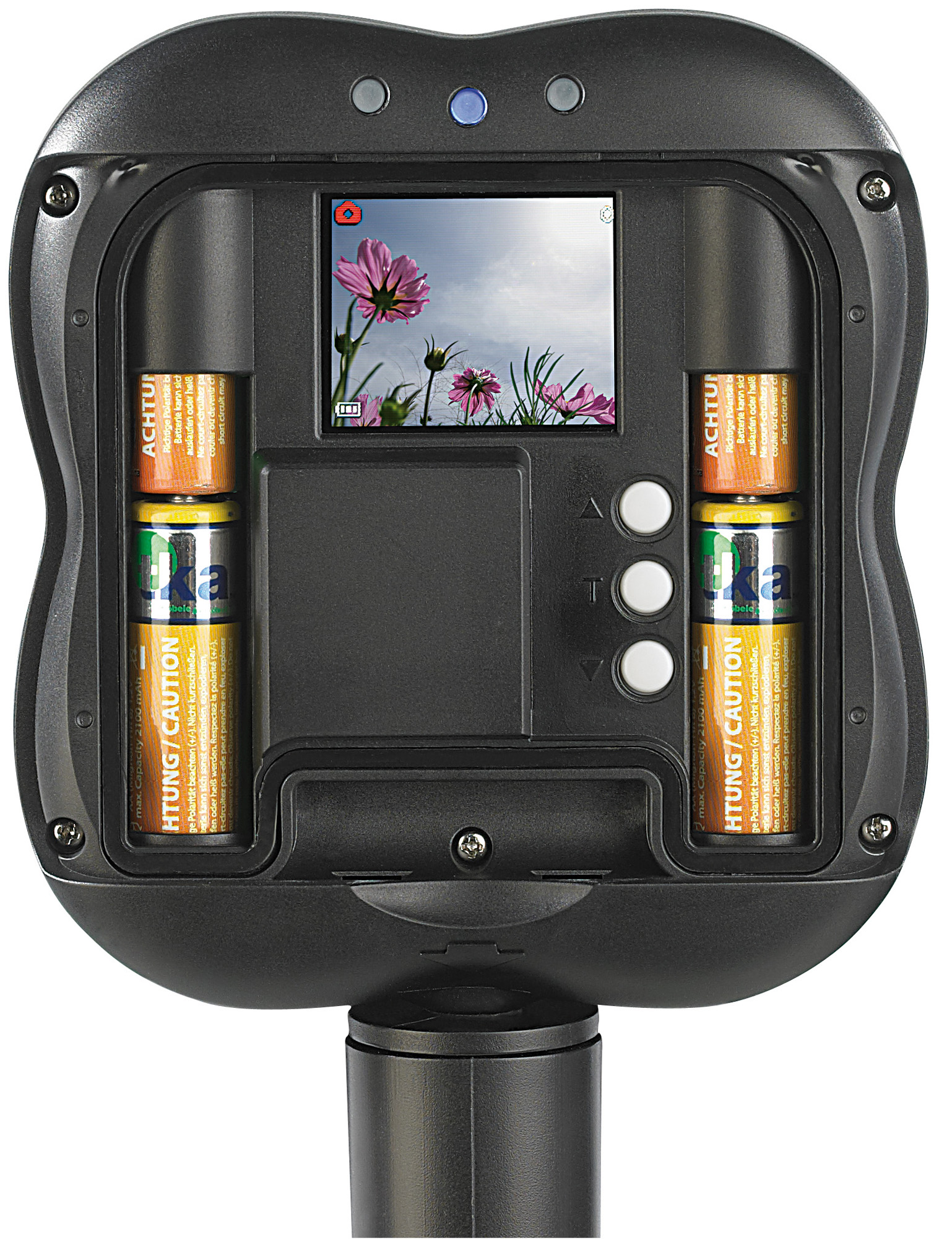 Vielseitige Aufstellmoeglichkeiten: Mit Stativgewinde und Erdspiess