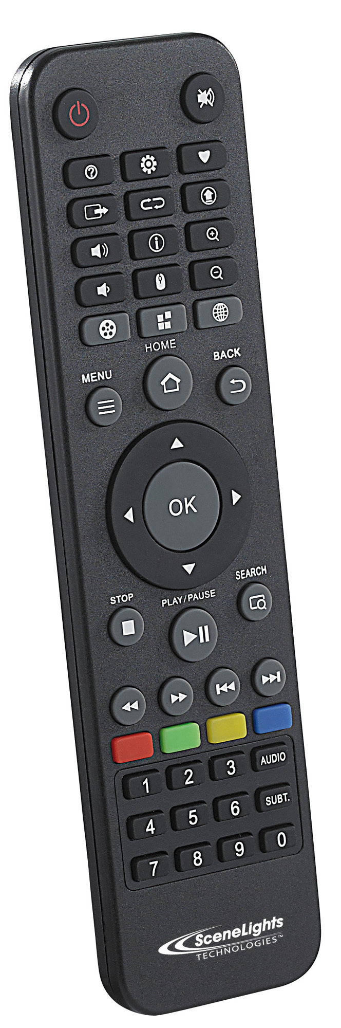 9 Tasten erlauben einfachstes Handling des Beamers. Viel bequemer und direkt von der Couch geht es natuerlich mit der komfortablen Fernbedienung. Die ist im Lieferumfang selbstverstaendlich enthalten.