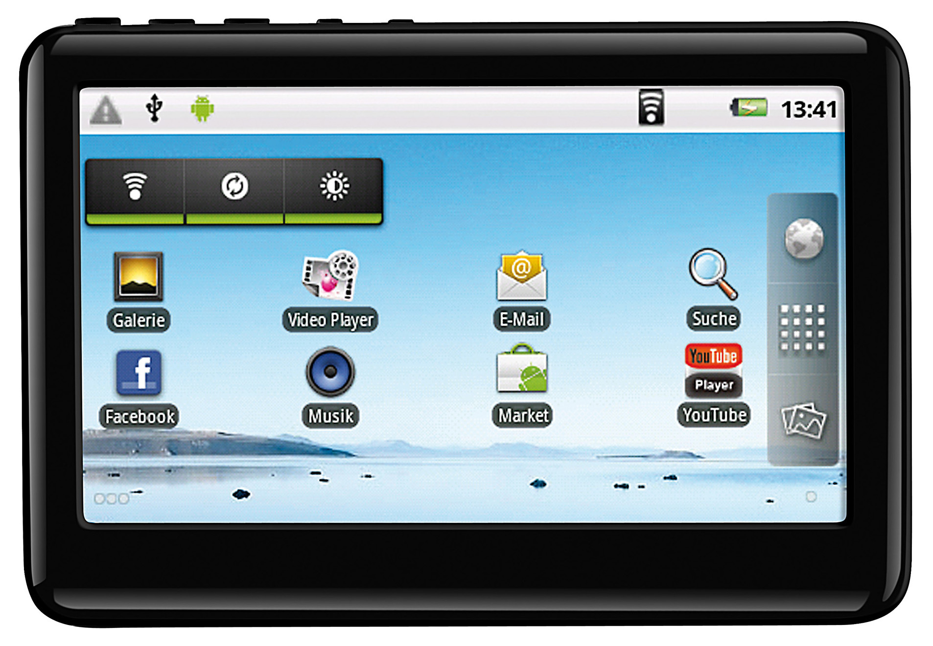 Ueber den Android Market von Google laesst sich der clevere Player darueber hinaus ganz nach Belieben erweitern. Mit wenigen Fingertipps verwandelt sich der Media-Tablet in eine trendige Game-Station, einen topaktuellen News-Kiosk oder eine Social-Media-Zentrale!