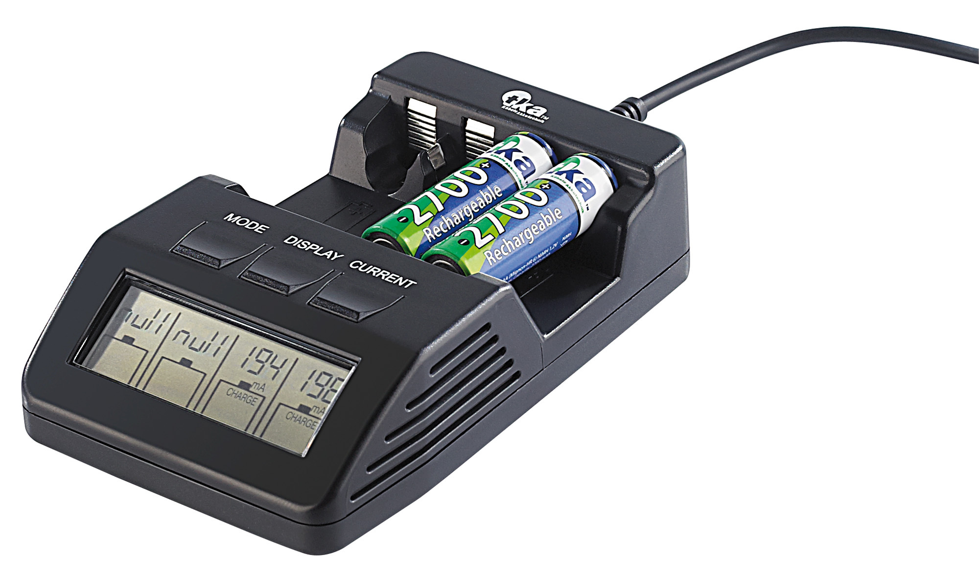 - Komfortables Tisch-Ladegerät für bis zu 4 NiMH- und NiCd-Akkus des Typs AA Mignon und AAA Micro