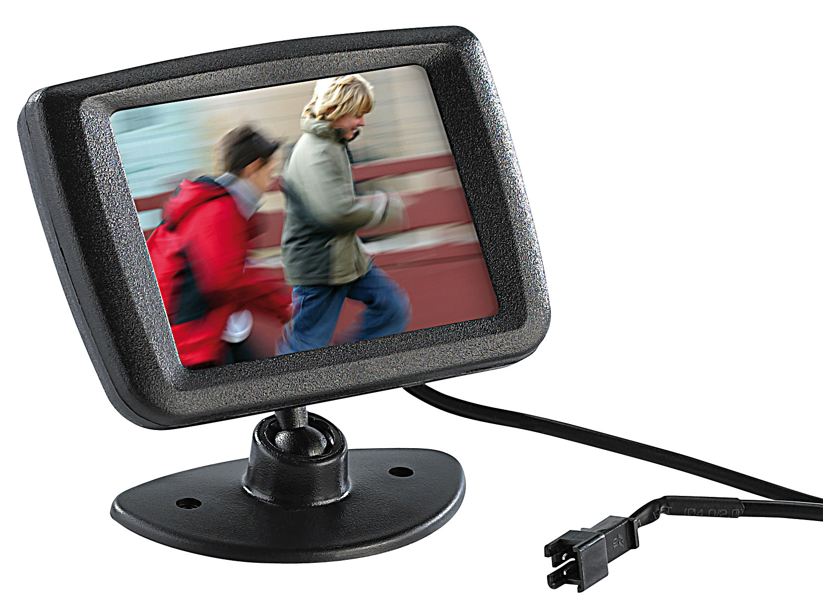 - Stromversorgung: 12V (Anschluss an Rueckfahrlicht), Monitor z.B. am Zigarettenanzuender (Montage durch Fachbetrieb empfohlen)