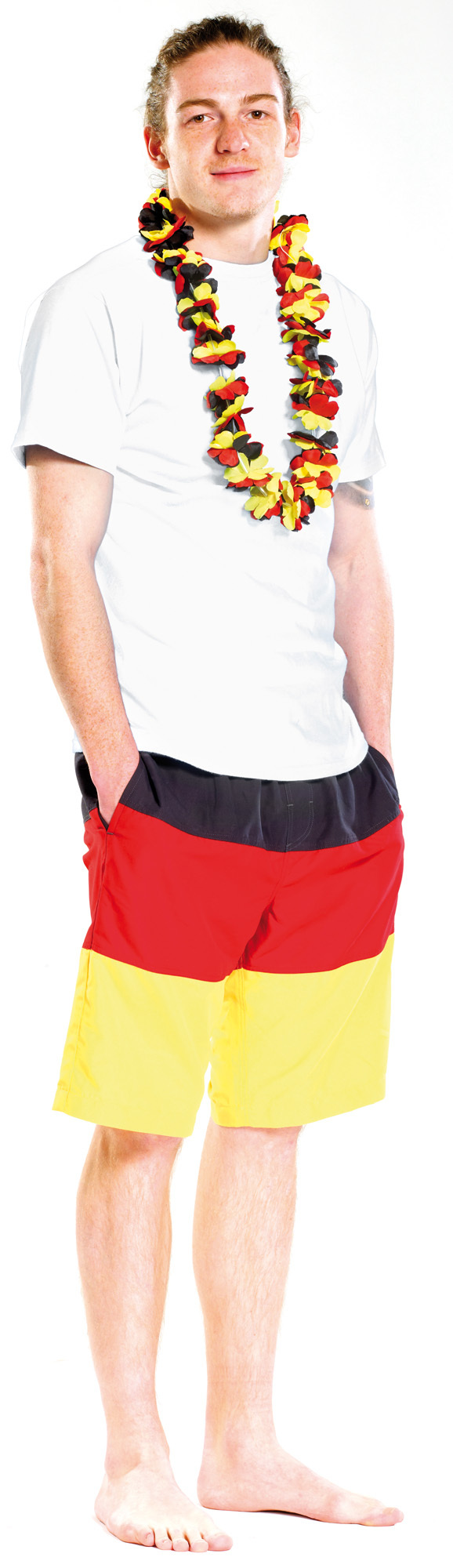 Überall wird man sehen, dass das Herz schwarz-rot-gold schlägt. Zur frisch aufgelegten Bräune fehlt dann nur noch diese Fan-Badeshorts: Da MUSS Deutschland einfach gewinnen!