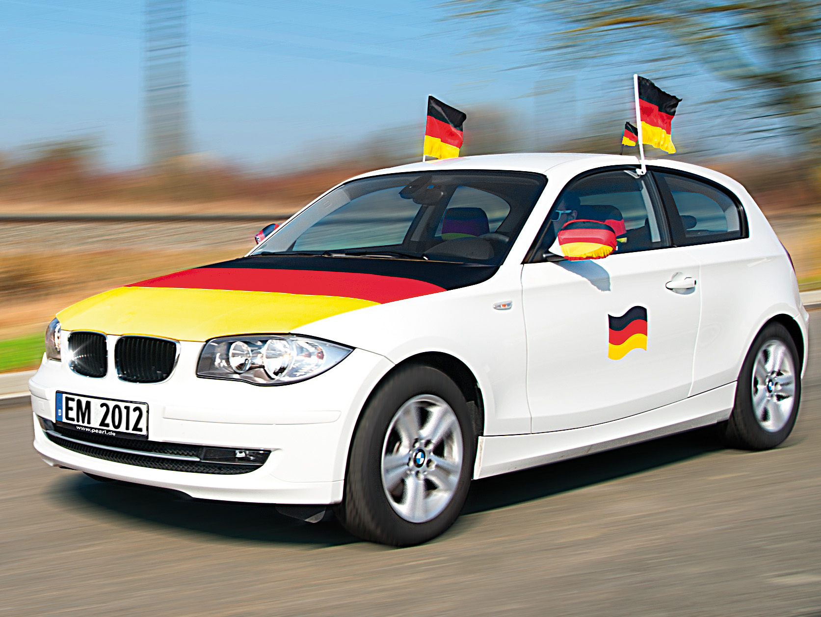 Schon von weitem zeigt man, dass das Herz "schwarz-rot-gold" schlägt. Vor allem im Autokorso nach dem Spiel wird das Kfz so zum absoluten Blickfang!