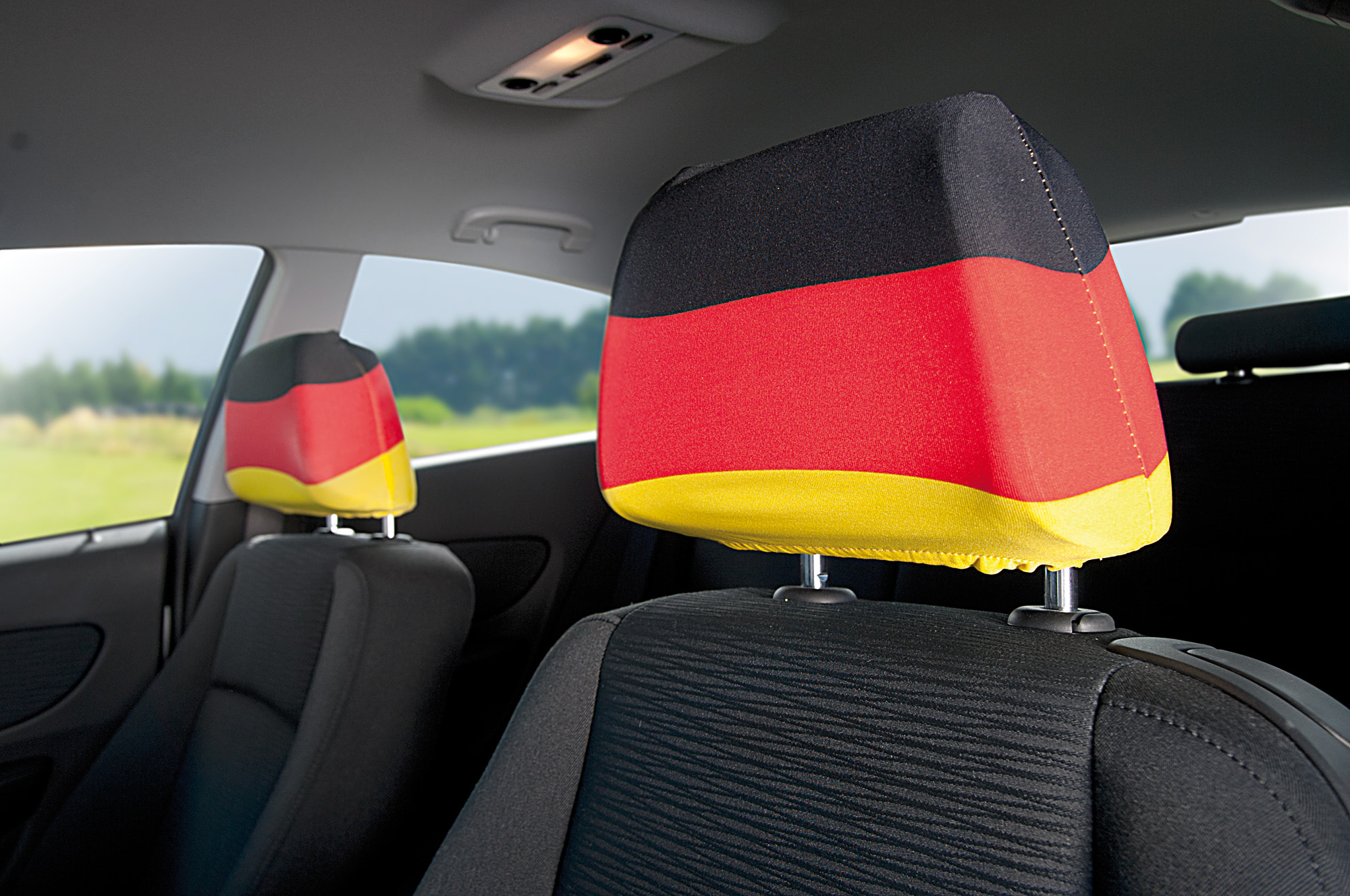 So wird Auto zur EM 2012 zum ultimativen Fan-Mobil: Mit den Überziehern von infactory für die Nackenstütze im Stil der deutschen Flagge. Die passen dank Universalgröße mit Gummizug auf jede Kopfstütze!