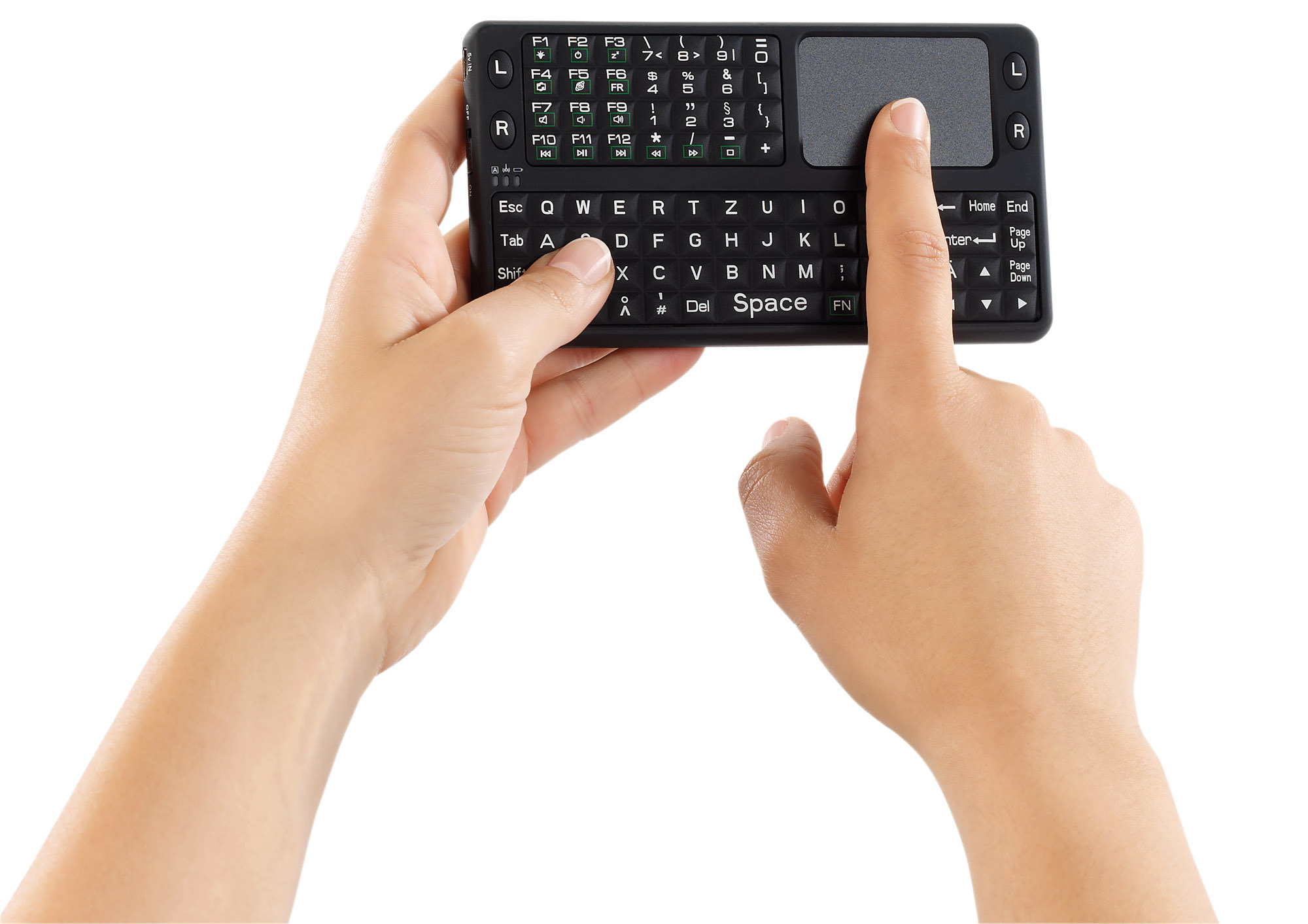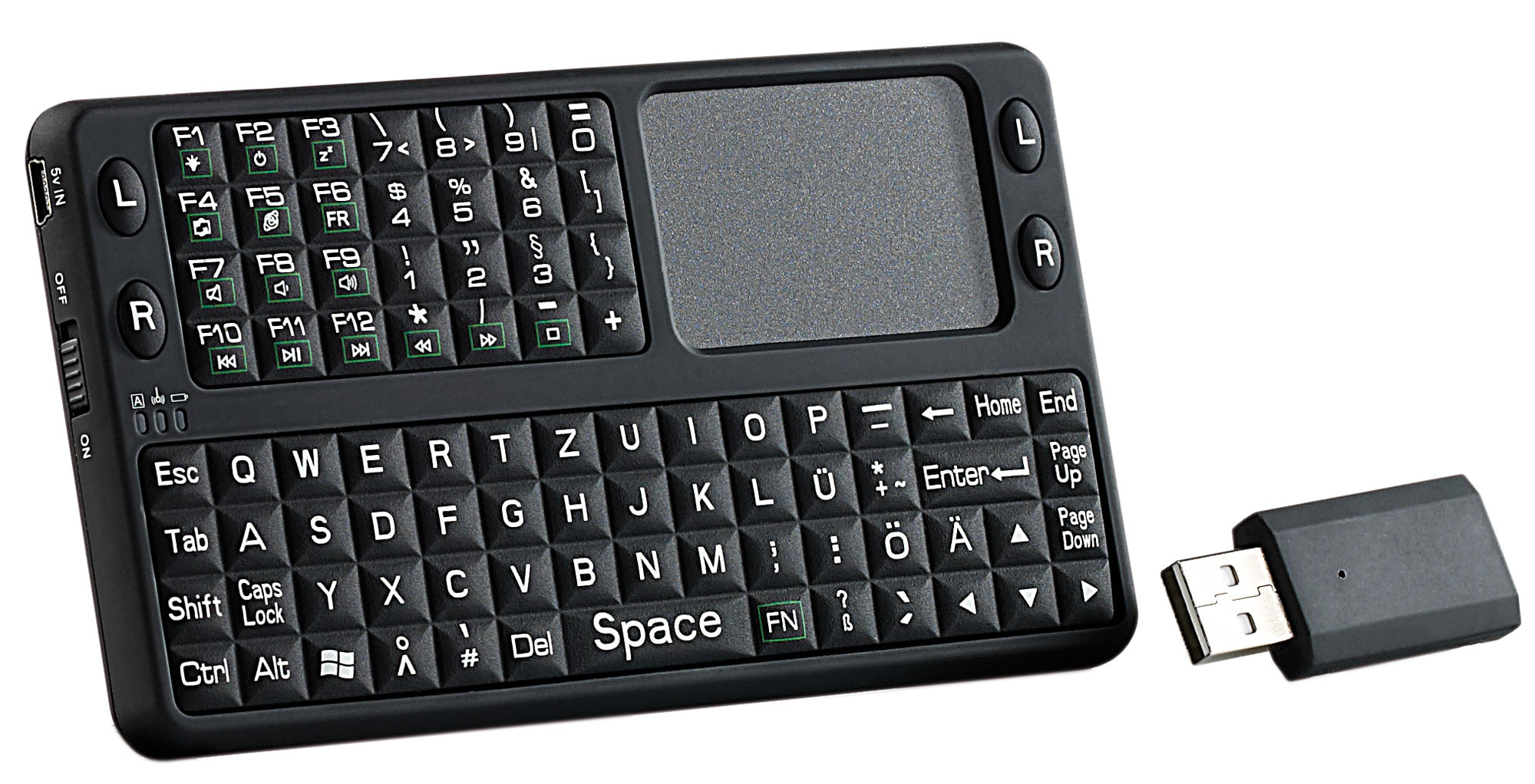 - Kompakte Mini-Tastatur mit Funktionstasten, Ziffernblock und Touchpad