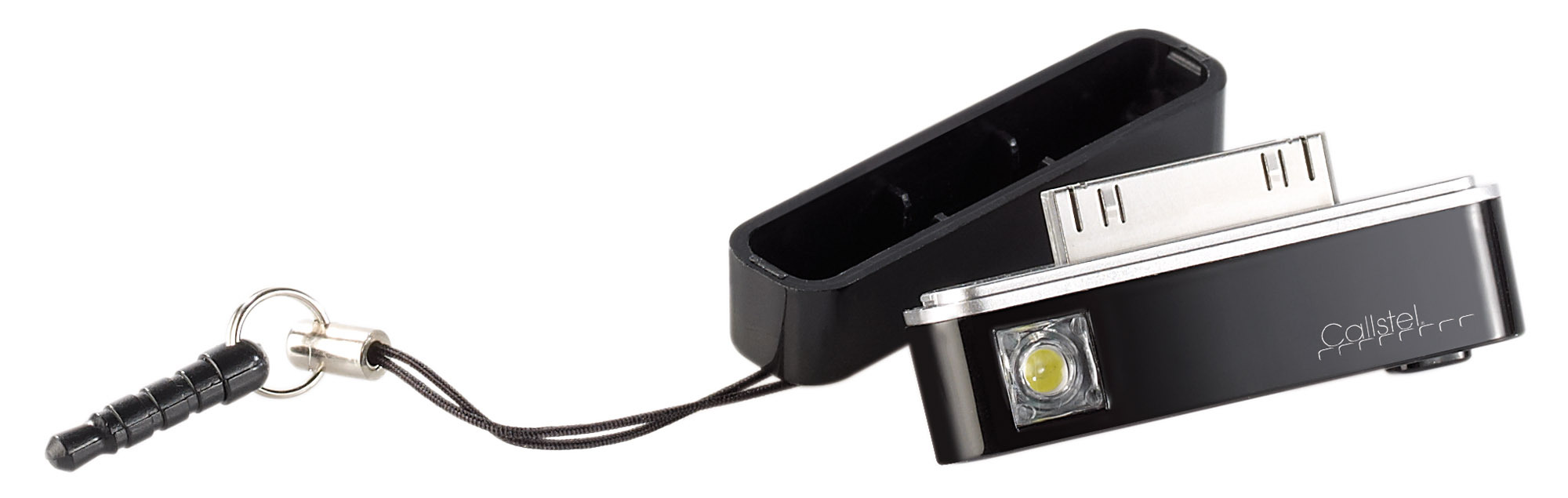 (lifepr) (Buggingen, 28.08.2012) Besonders sinnvoll für iPad- und iPhone-Modelle ohne integrierten Blitz: Das kleine Blitzlicht von Callstel wird einfach auf den Dock Connector gesteckt und beleuchtet auf Knopfdruck die Szenerie.