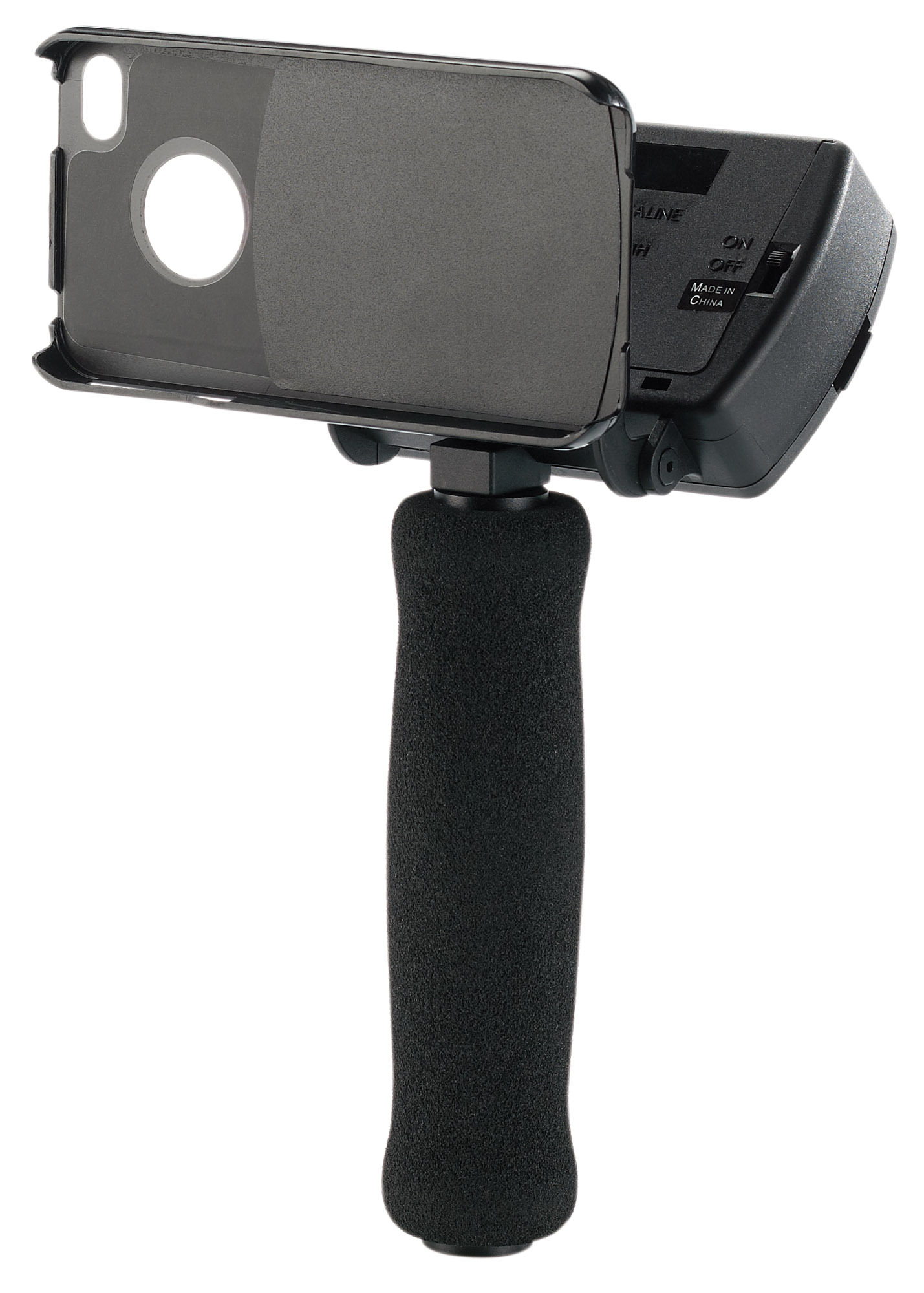 Und sollte mal kein Stativ in der Nähe sein, so kann man die Halterung auch am mitgelieferten Soft-Griff befestigen. Der sorgt in Kombination mit einer ruhigen Hand für perfekte, flüssige Film- Bewegungen.