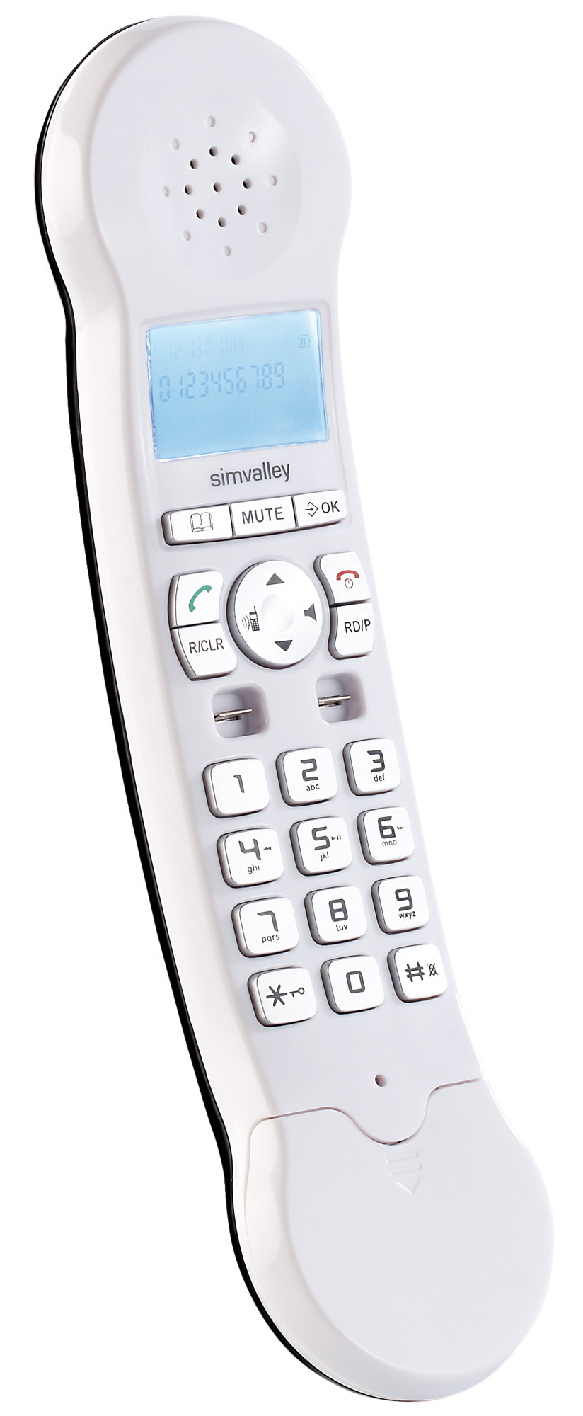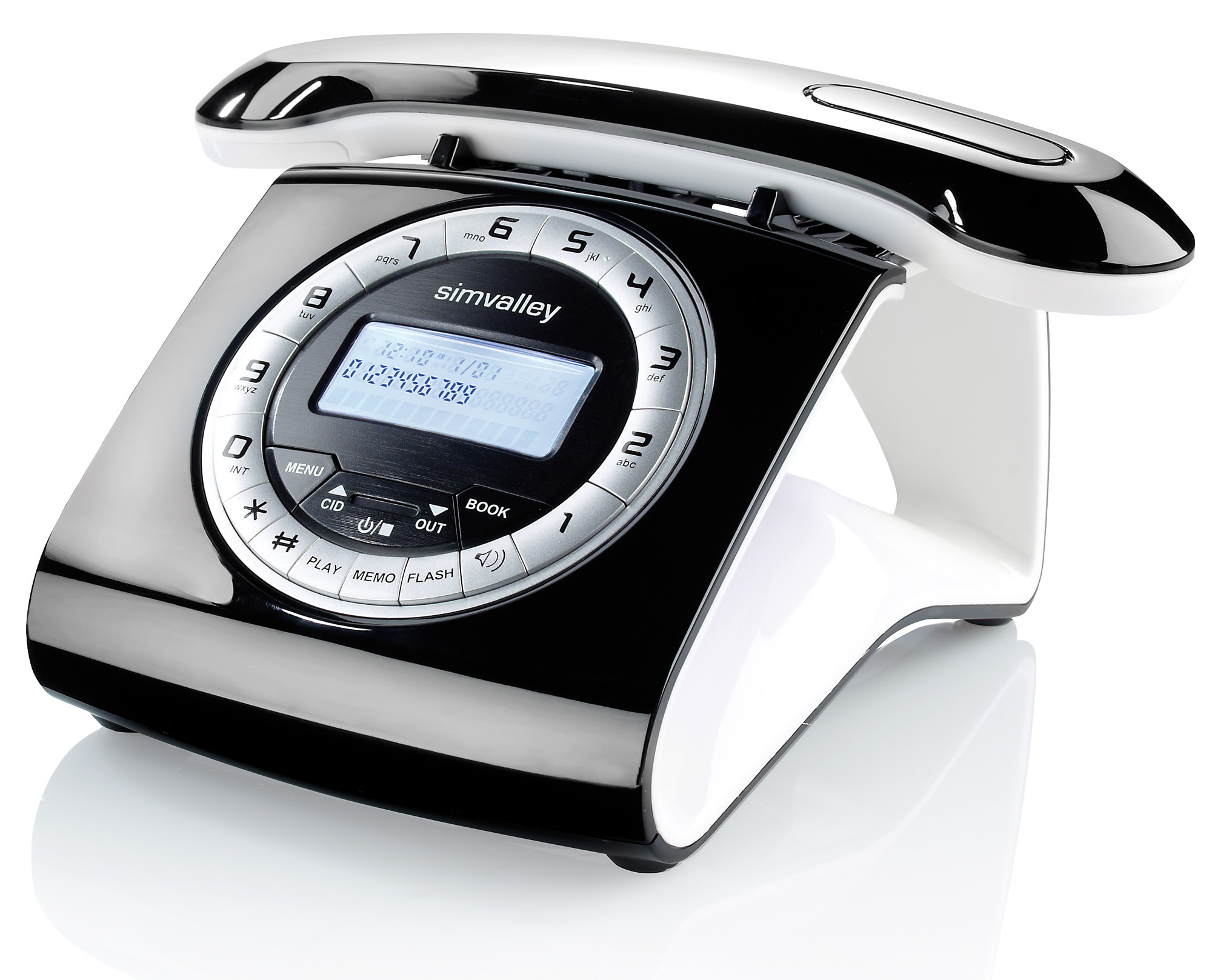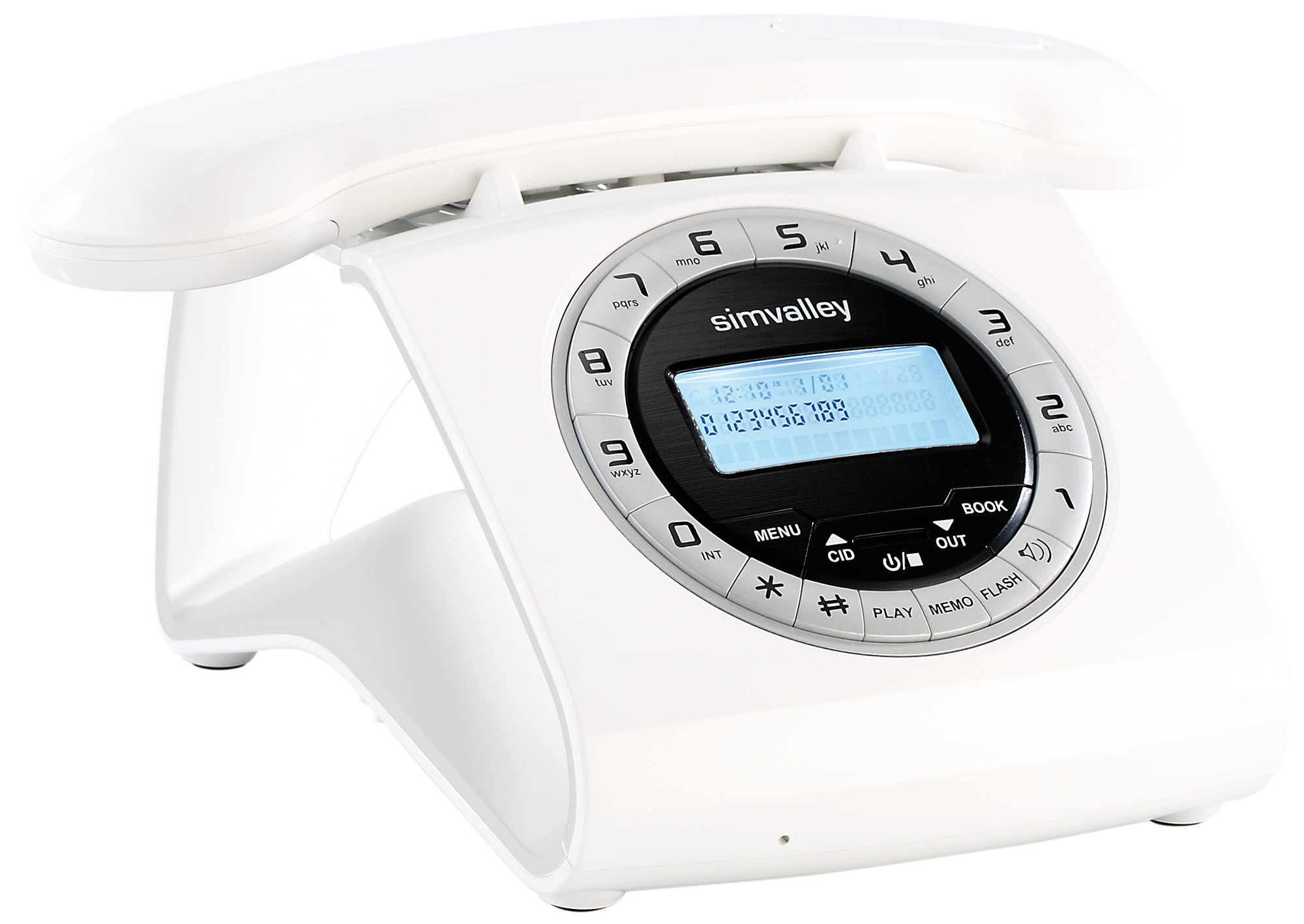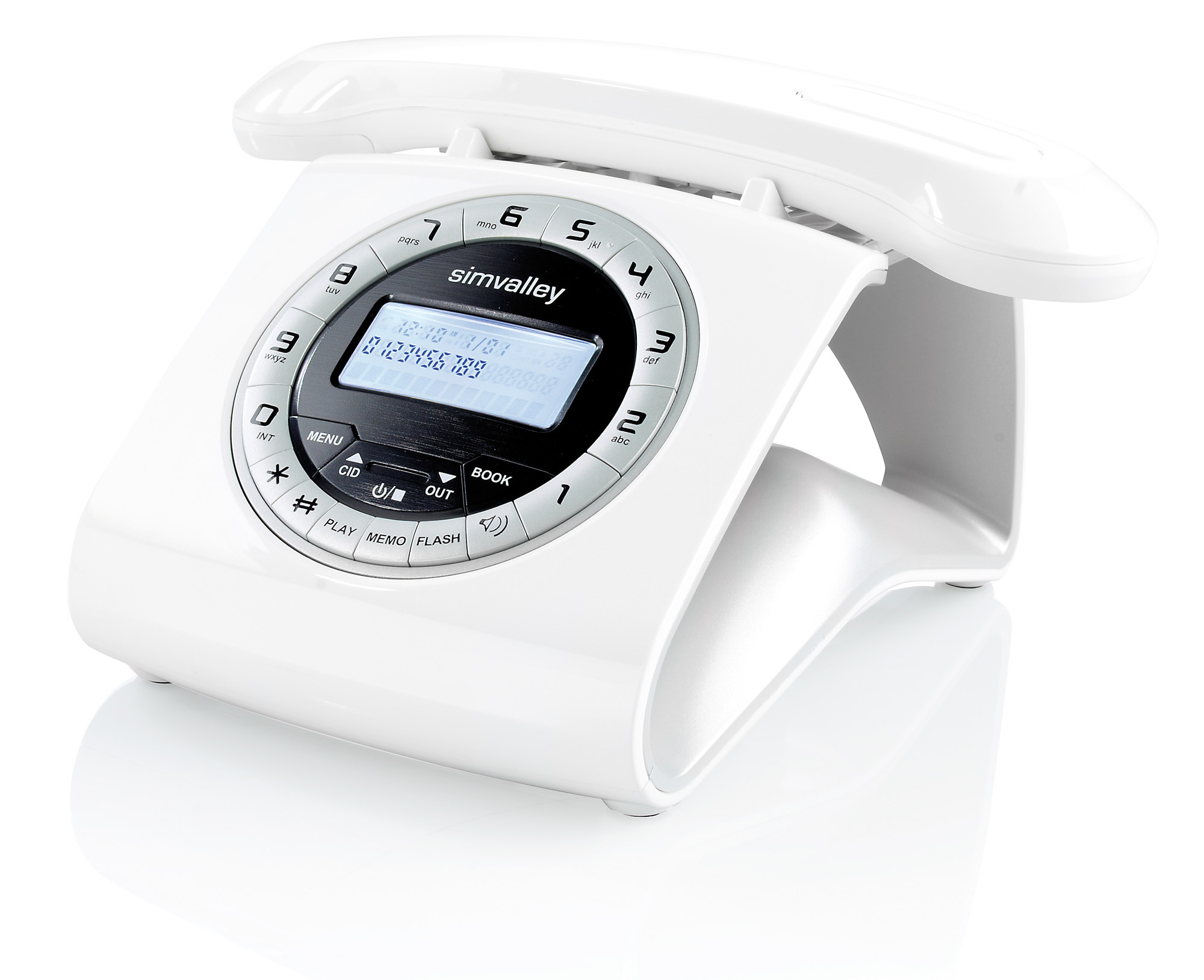(lifepr) (Buggingen, 31.10.2012) Von vorne sieht dieses Telefon von simvalley communications aus, wie der klassische Apparat mit kultiger Wählscheibe. Erst wenn man seitlich draufschaut sieht man, was das futuristische Schnurlostelefon so einzigartig macht: Die Basis ist hohl! Man kann durch sie hindurchschauen!